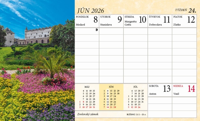 Objevujte krásy Slovenska po celý rok! Tento praktický sloupcový týdenní kalendář vás každý týden potěší fotografií vybraného místa ze Slovenska - od malebných vesniček až po majestátní přírodní scenérie. Každá fotografie je doplněna stručným popisem místa, což dává kalendáři nejen estetickou, ale i vzdělávací hodnotu. Skvělý společník do kanceláře nebo domů pro všechny, kteří rádi plánují a poznávají krásy své vlasti.
