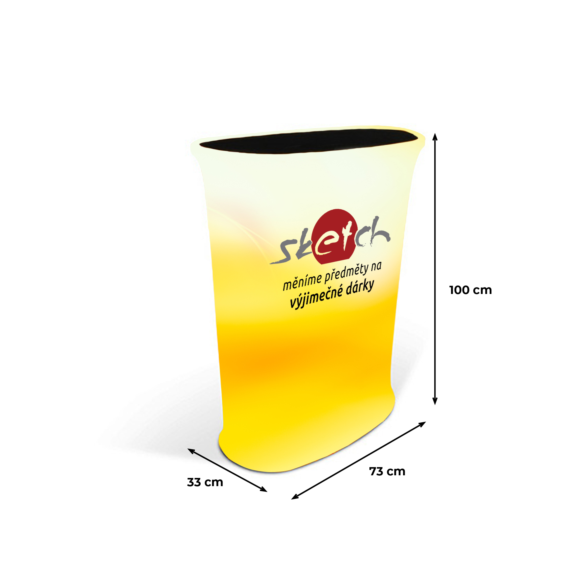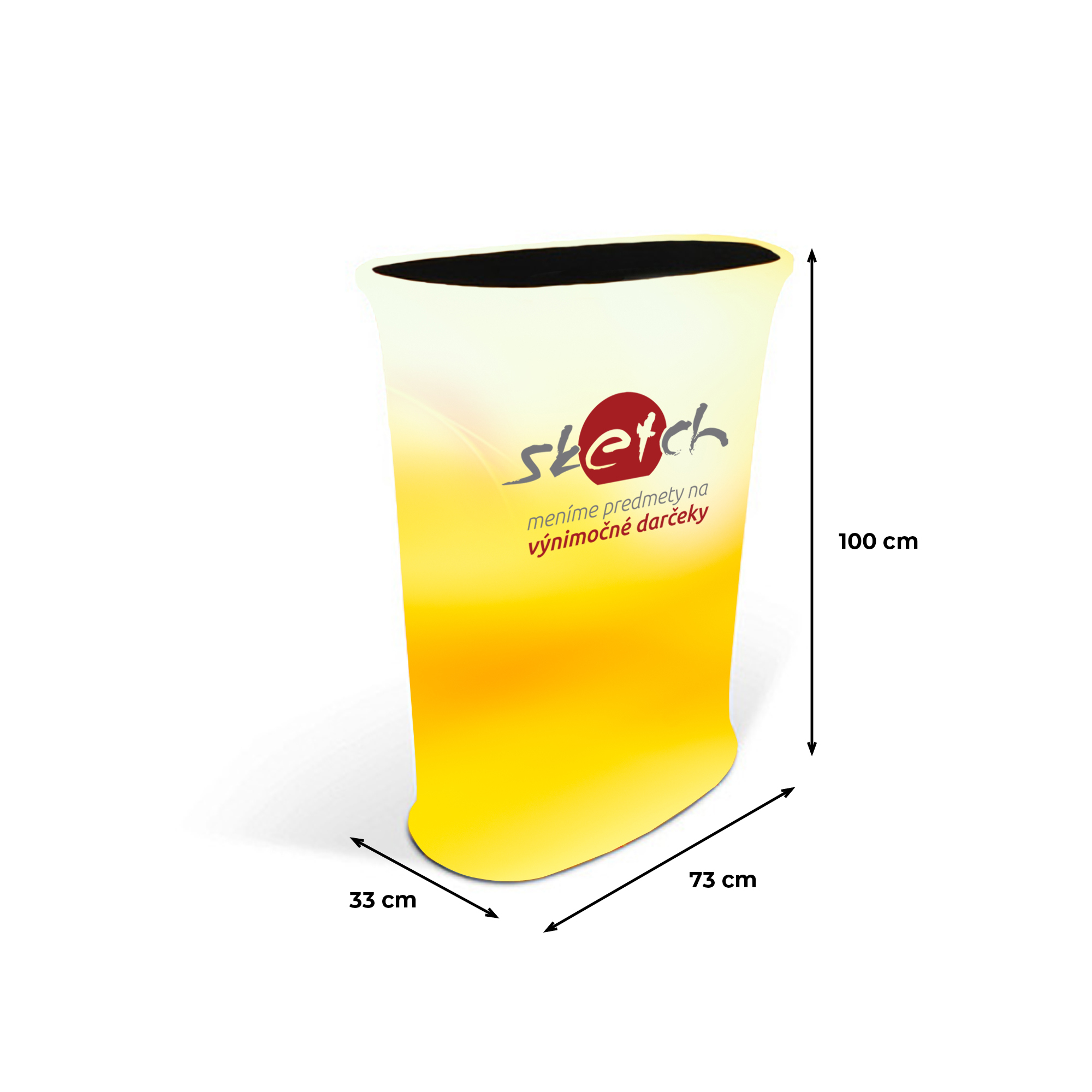 Textilní prezentační pult je vytvořen z odolného hliníku, doplněn o top z MDF desky a potisk provedený termosublimační technologií na kvalitním polyesteru. Díky lehké konstrukci je instalace jednoduchá bez potřeby nářadí, přičemž nízká váha produktu usnadňuje transport. Tyto stolky nejen efektivně zvyšují rozpoznatelnost Vaší značky a podporují interakci se zákazníky, ale jsou ideální pro živé prezentace a firemní události. Se svým sofistikovaným designem a funkcionalitou přispívají k zapojení publika a představují účinný způsob, jak zvýšit Vaši viditelnost.