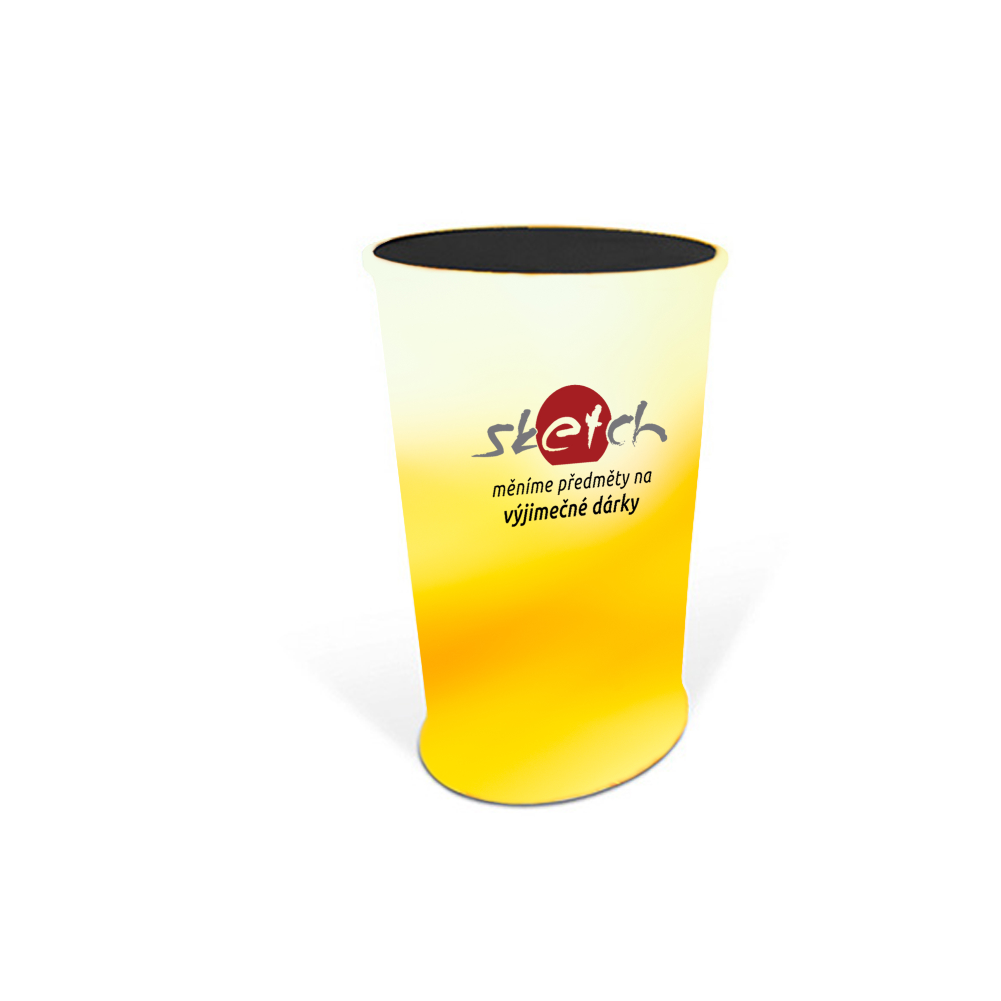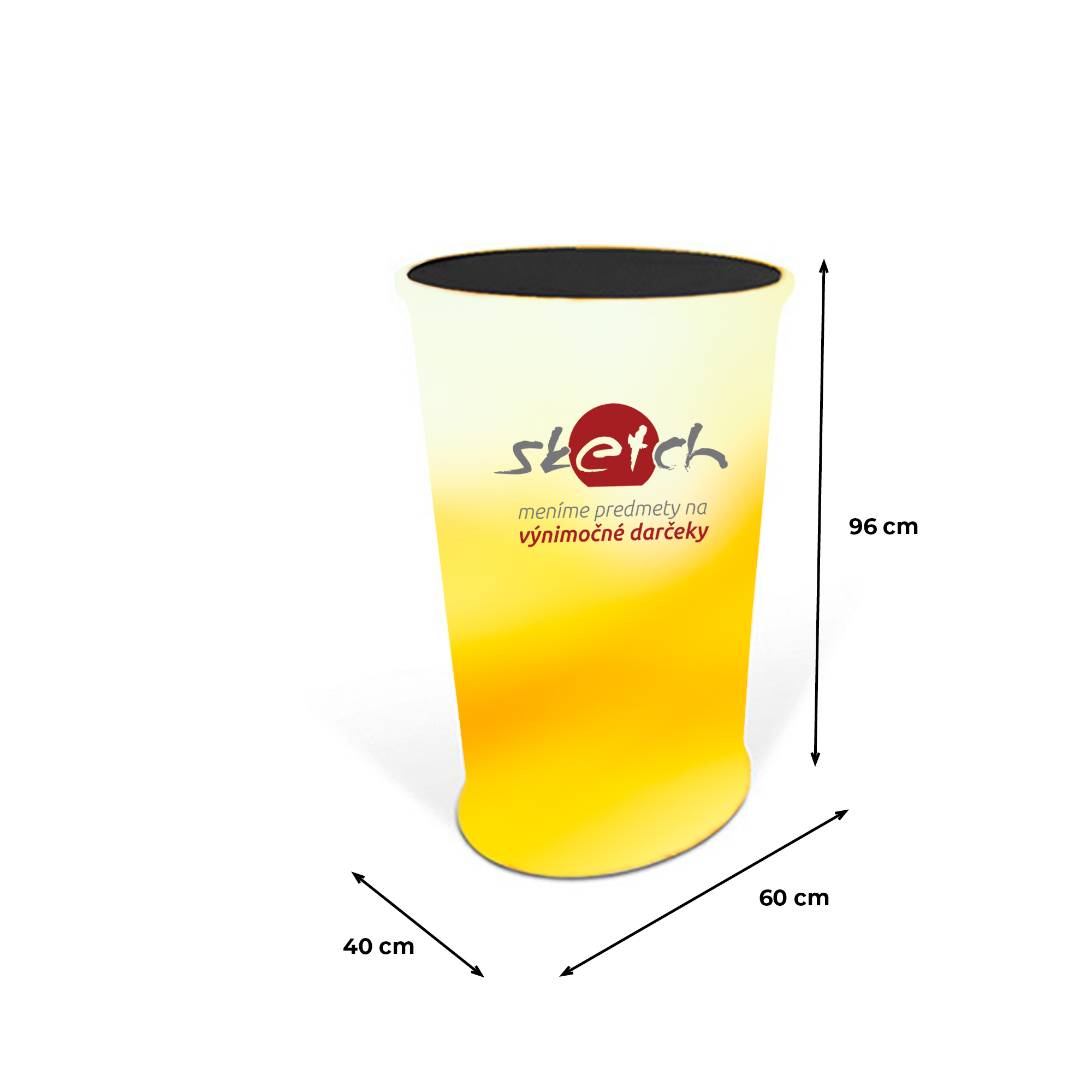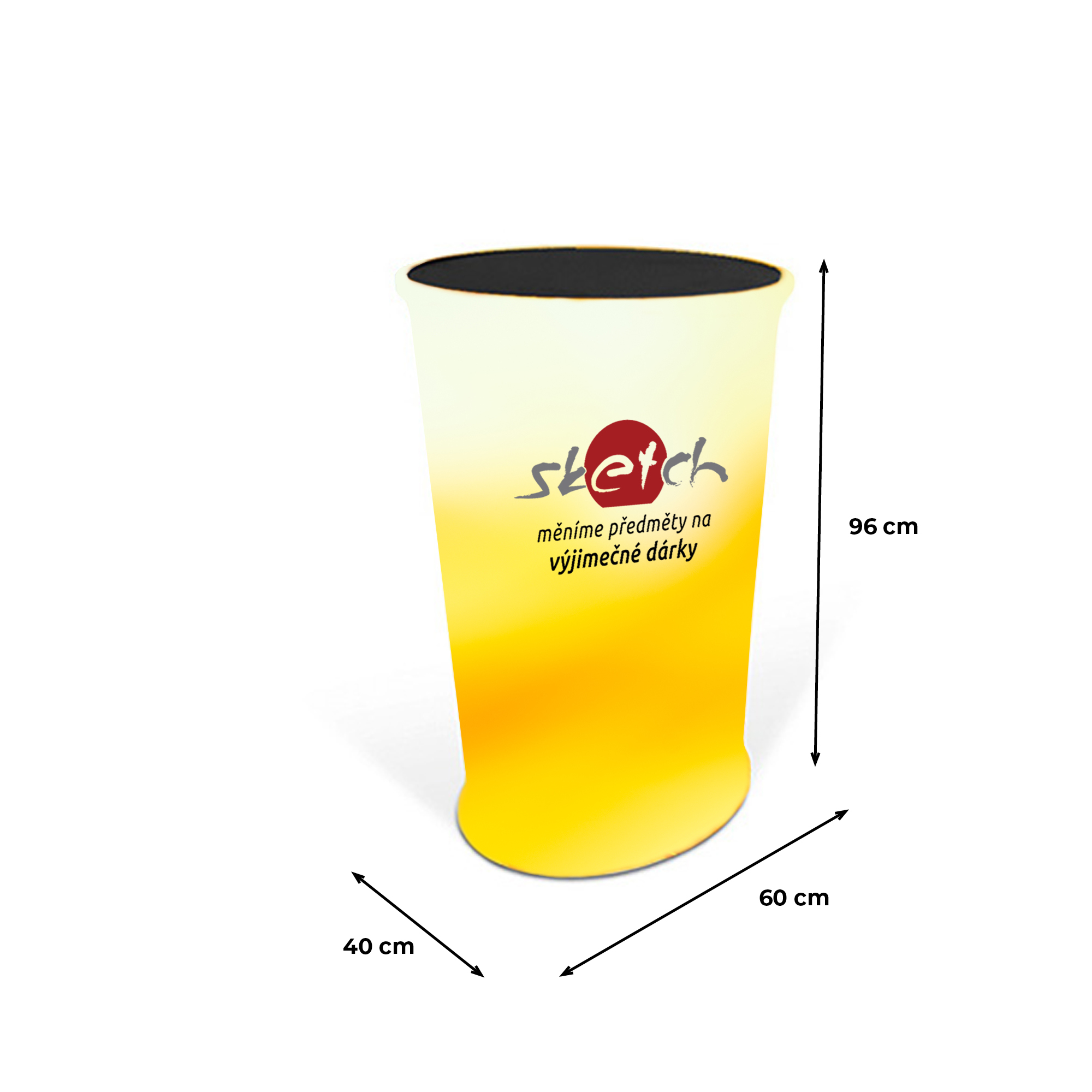 Praktický design: Lehká konstrukce umožňuje snadný transport a instalaci bez nářadí. Interakce a viditelnost: Sofistikované textilní provedení efektivně podporuje rozpoznatelnost značky a zapojení zákazníka.