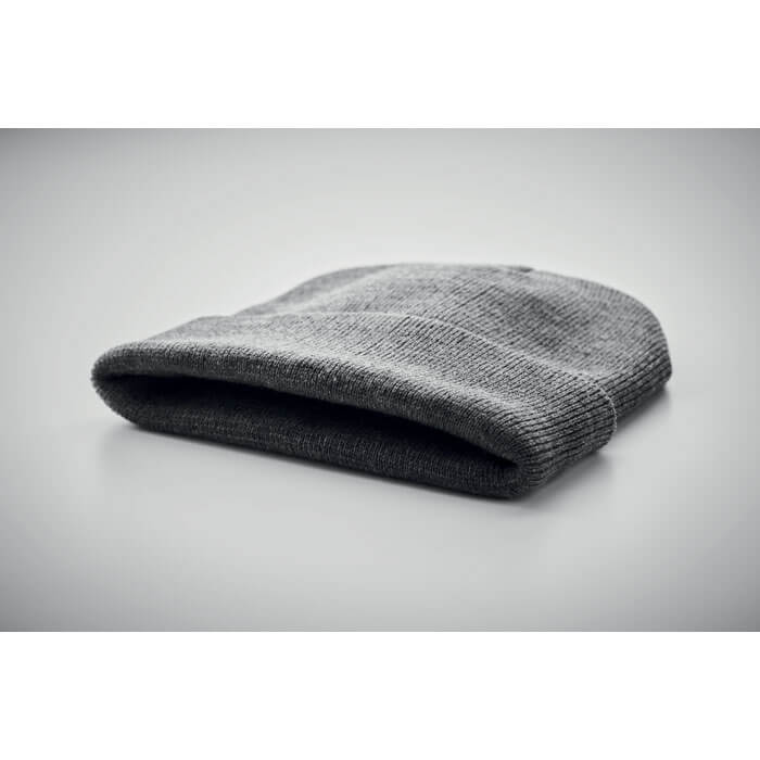 Unisex pletená čepice z měkkého strečového polyesteru RPET. Ohrnutý okraj. Zůstaňte v teple a pohodlí během chladných zimních dnů s touto měkkou čepicí. Tato čepice je vyrobena z recyklovaného PET a představuje promyšlenou a udržitelnou volbu.