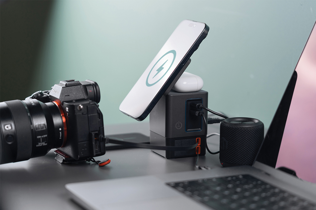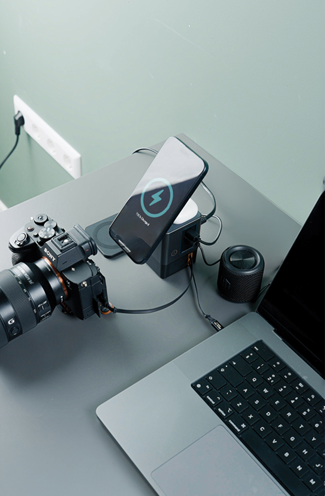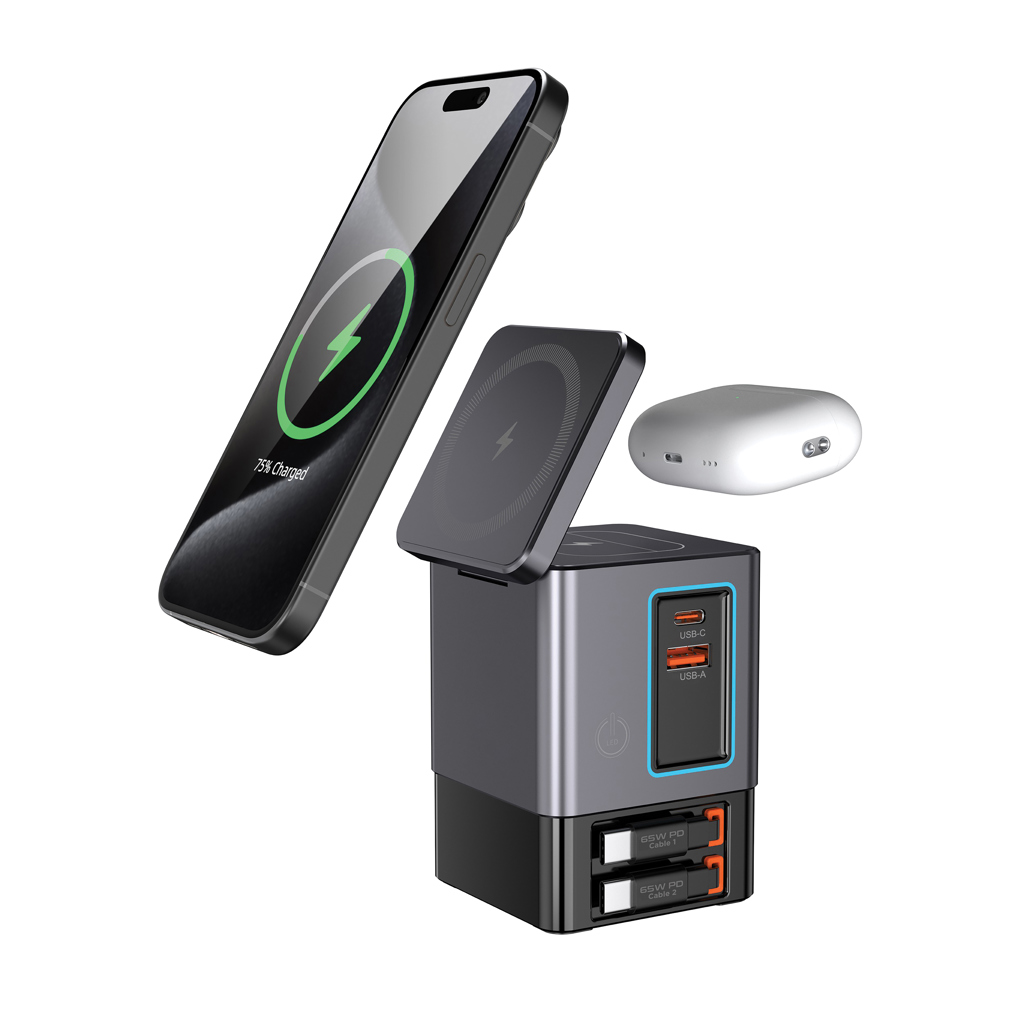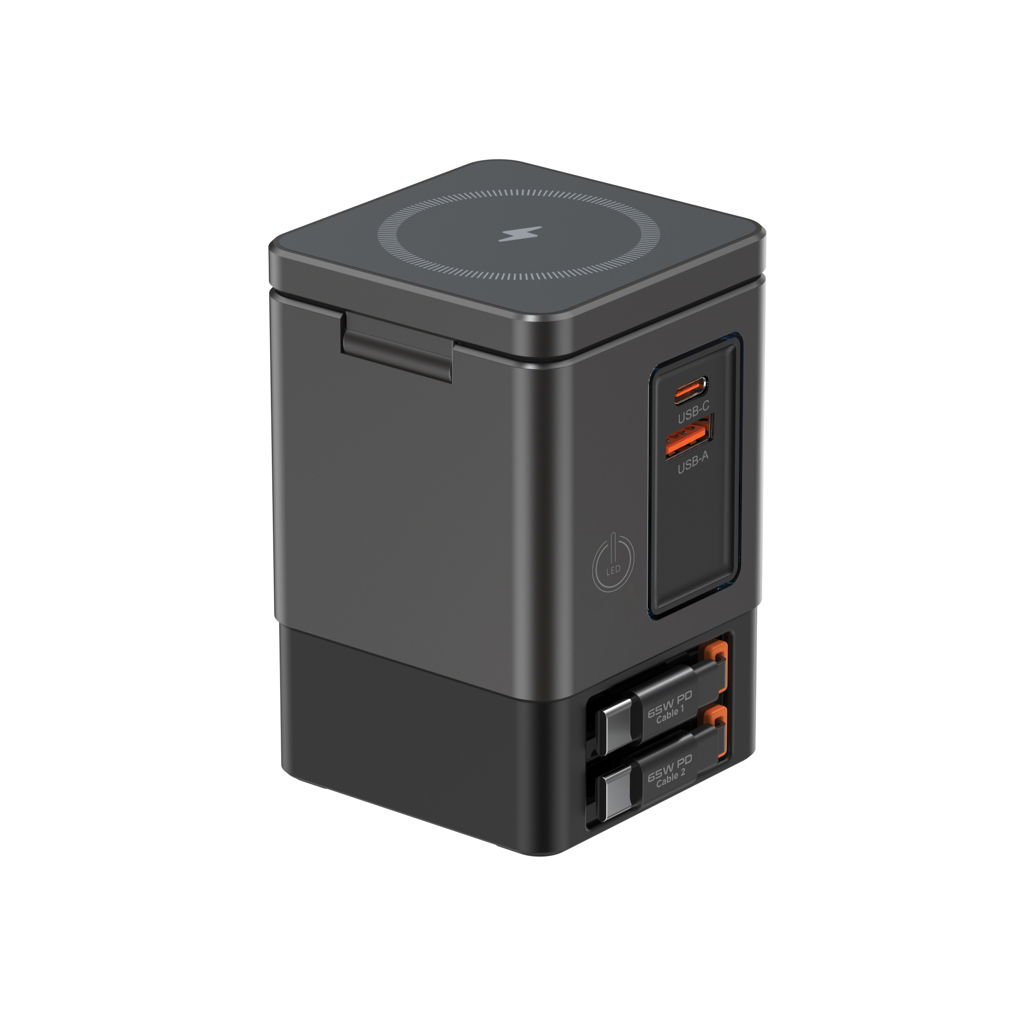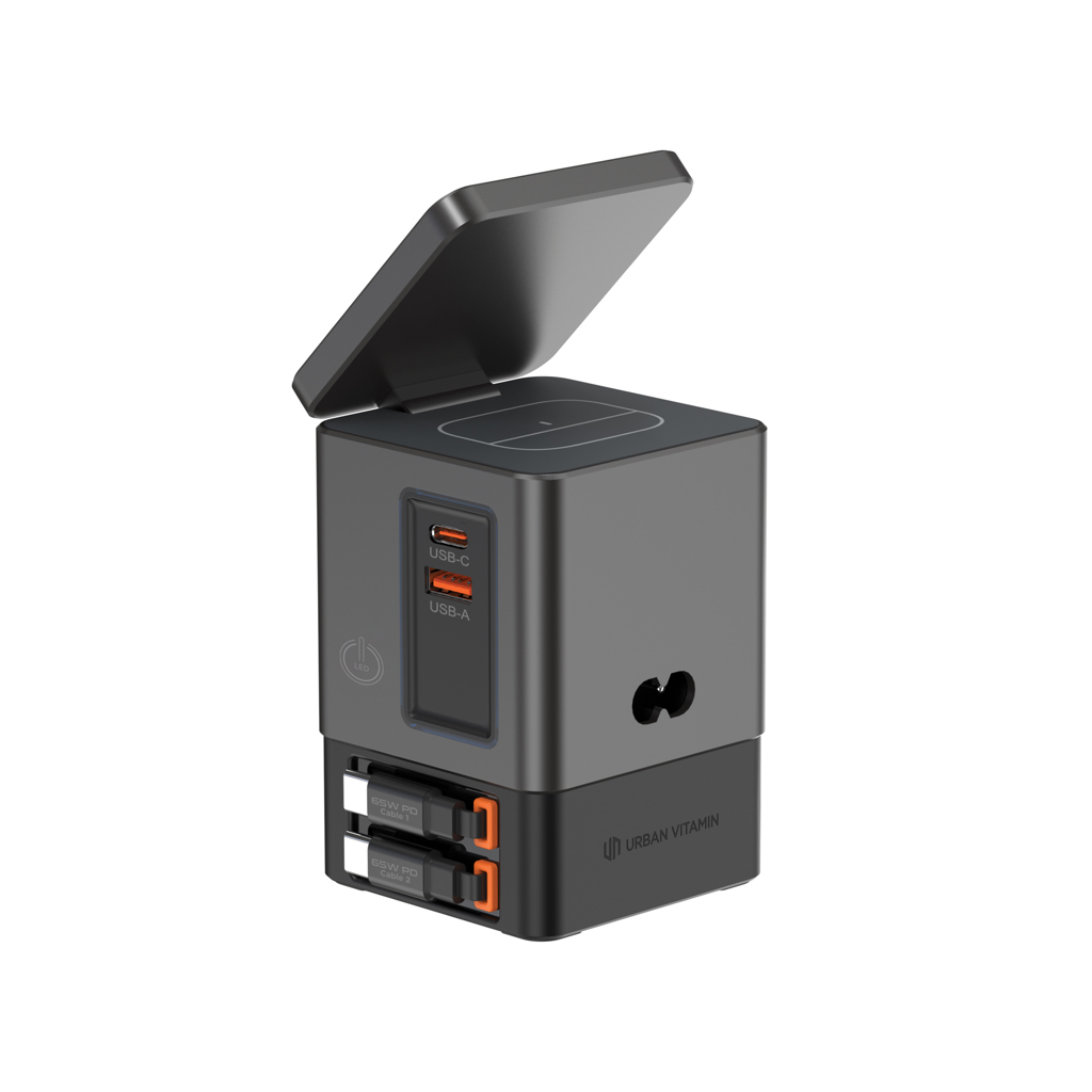 Všestranné řešení na které jste čekali. Sacramento je 105W GaN nabíjecí stanice kombinující maximální výkon se zabudovaným pohodlím. Má dvě integrované 65W USB-C navíjecí kabely, díky kterým máte rychlé nabíjení na dosah ruky. Potřebujete více možností? Sacramento také zahrnuje USB-C a USB-A porty, poskytujíc tím nabíjení čtyř zařízení současně tj. laptopy, chytré telefony, tablety a další – vše najednou. Pro vaše bezdrátová zařízení je Sacramento vybaveno výkonnou 15W magnetickou bezdrátovou nabíječkou, která udrží váš telefon bezpečně na místě a samostatnou bezdrátovou podložkou navrženou speciálně pro menší předměty, jako jsou sluchátka nebo AirPods (max. 5W). Sacramento poskytuje vysoký výkon s kompaktním a efektivním designem – produkuje méně tepla a využívá energii efektivněji než tradiční nabíječky. Sacramento je vyrobeno z recyklovaného ohnivzdorného PC s certifikátem RCS (Recycled Claim Standard). Celkový recykl. obsah: 26 % na základě celk. hmotnosti položky.