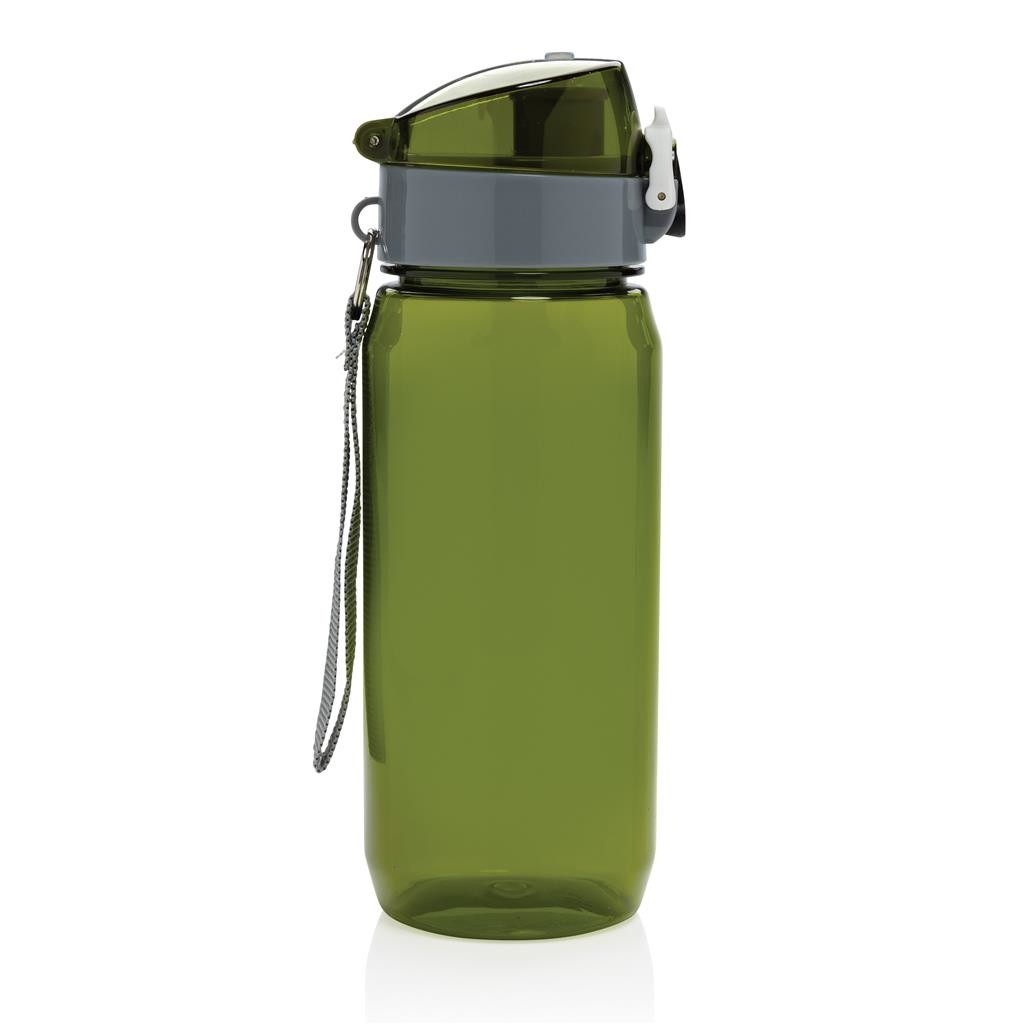 Lahev na vodu s nepropustným uzamykatelným uzávěrem. Snadné ovládání i jednou rukou. Vyrobená z RCS recyklovaného PET plastu. RCS (Recycled Claim Standard) je globální standard, který umožňuje ověřit použití recyklovaného materiálu v produktu napříč celým dodavatelským řetězcem. Celkový podíl recyklátu dle váhy produktu: 73 %. Pouze pro studené nápoje a pro ruční mytí. Bez BPA. Objem: 600 ml. Baleno v FSC® kraftové dárkové krabičce.