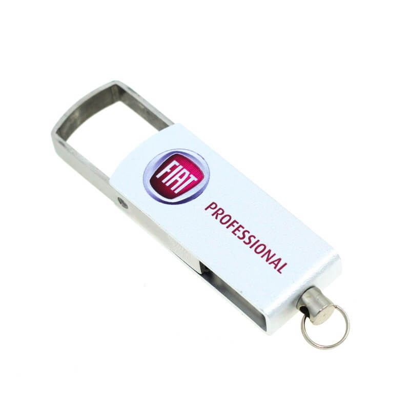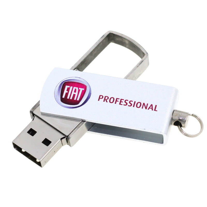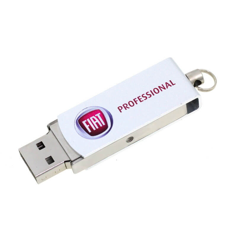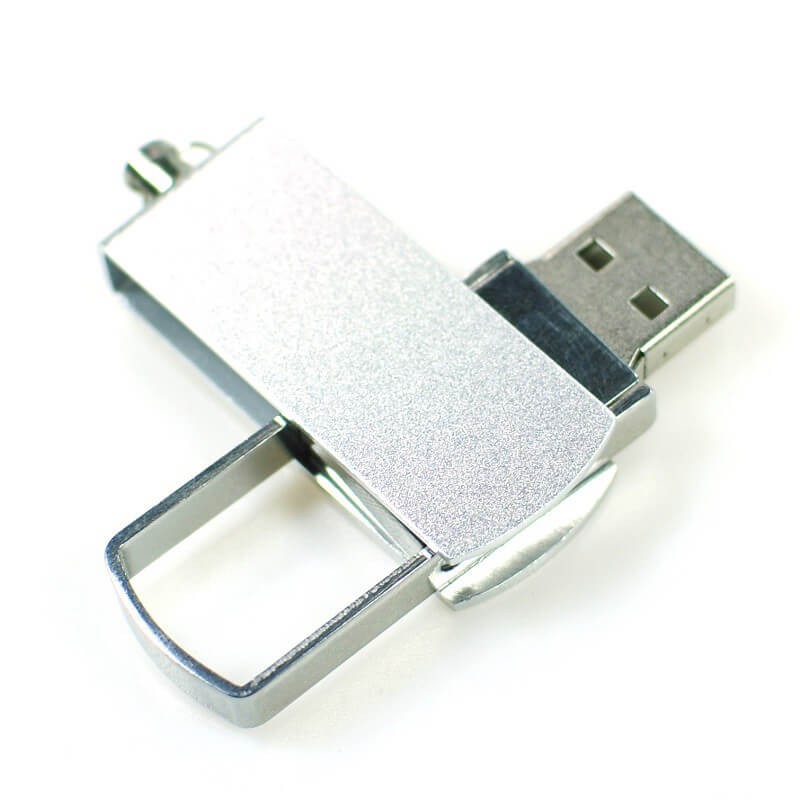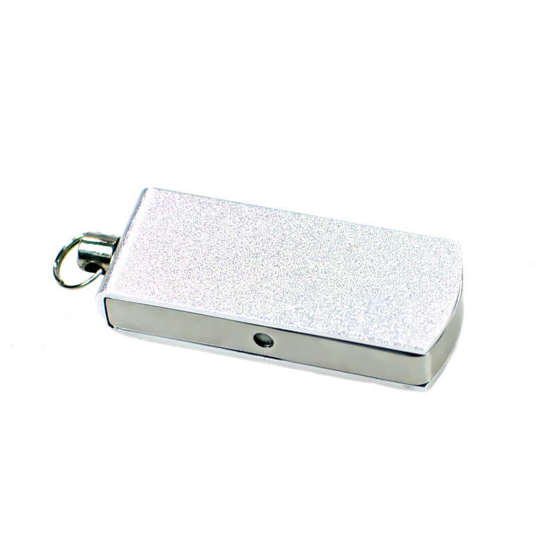 Moderní kovový mini USB flash disk s otočným konektorem. Vhodný pro laser loga, případně tampon tisk. Možno připojit šňůrku, kroužek, nebo karabinku.