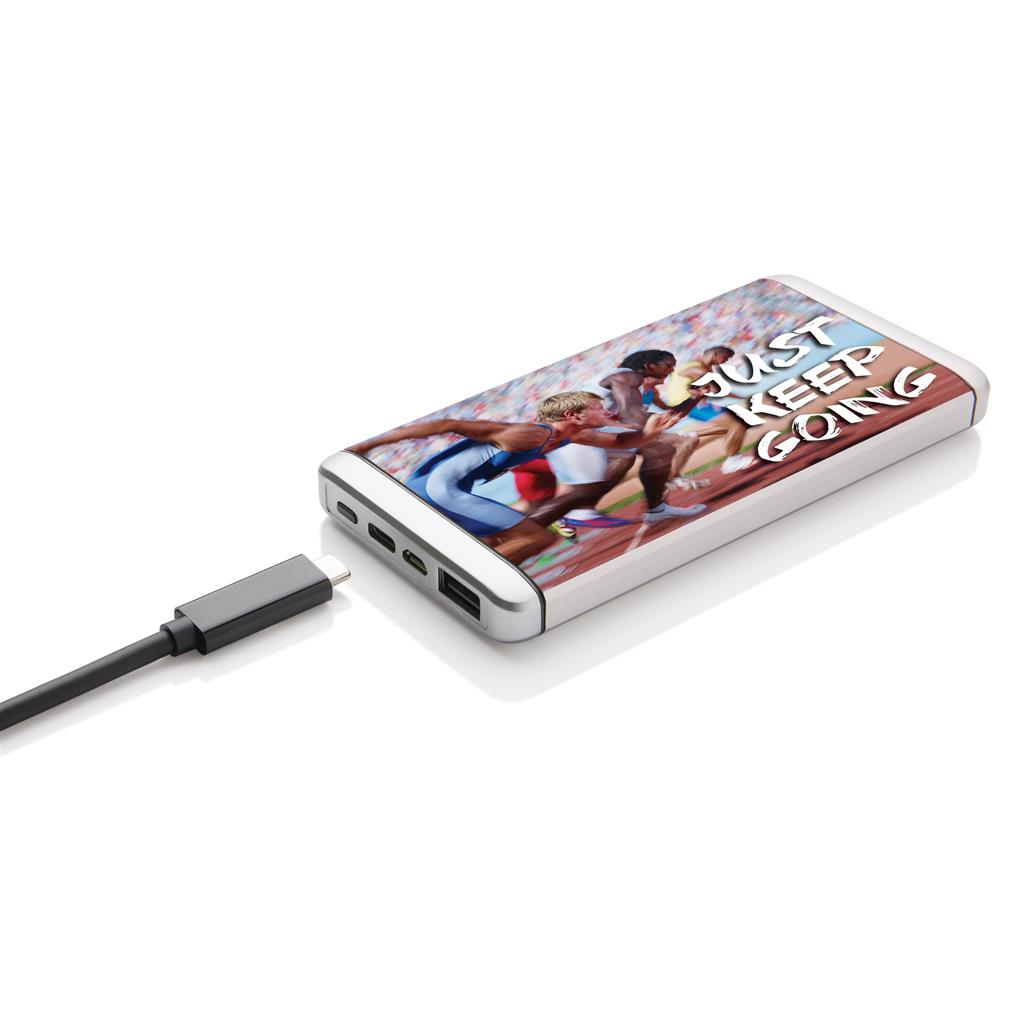 Powerbanka s kapacitou 10 000mAh vyrobená z eloxovaného hliníku. Výstup zajišťuje jak klasické USB tak i typ C, který se stává novým standartem pro moderní mobilní zařízení. Nabíjení tak můžete provádět jakýmkoliv dostupným kabelem. Výstup 5 V/2 A, vstup 1 A. 1 baterií typu Li-poly v balení.