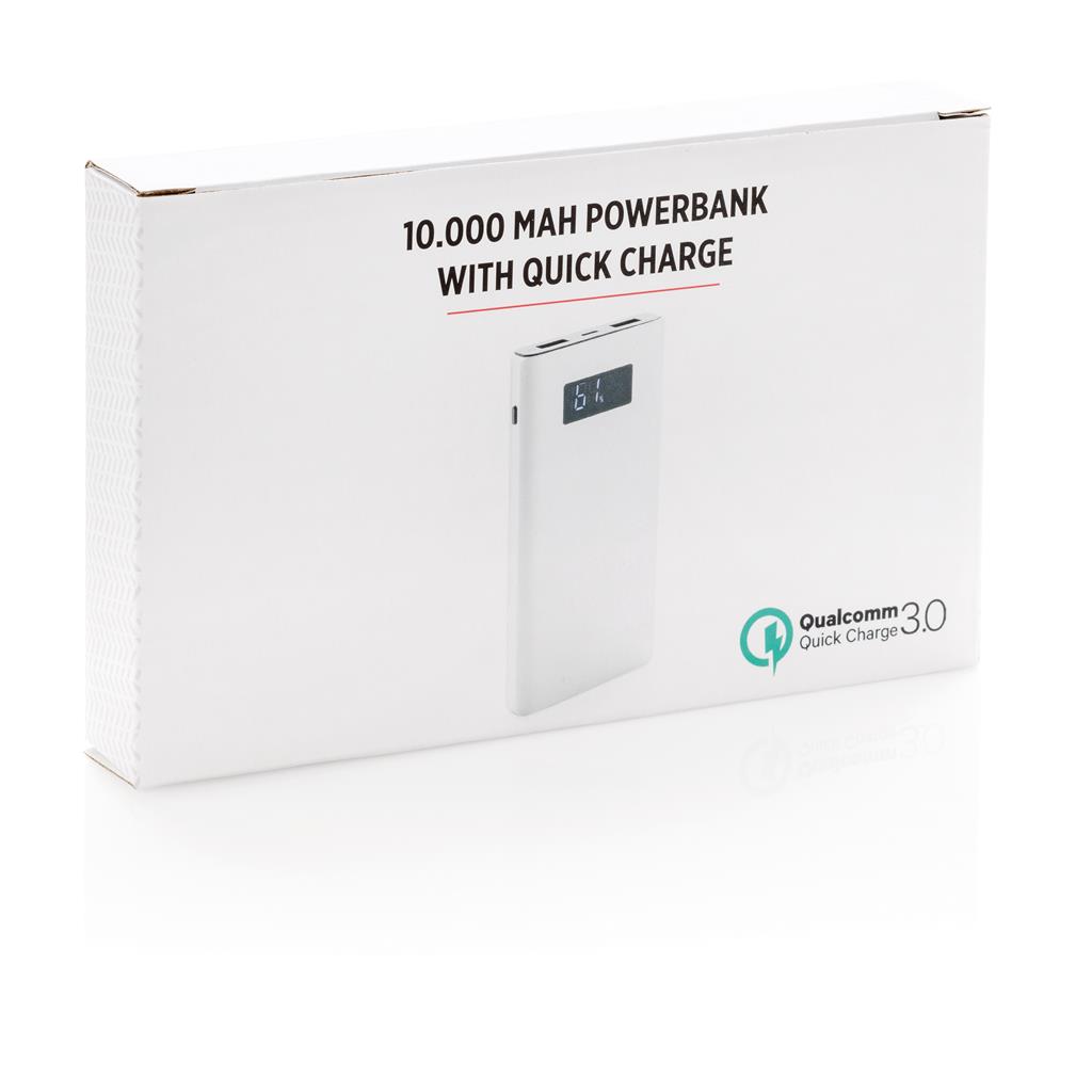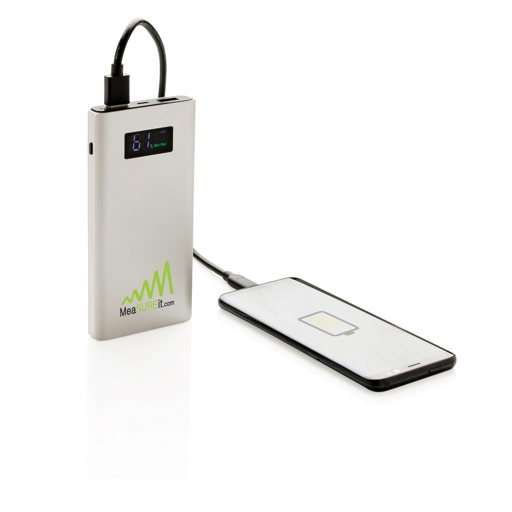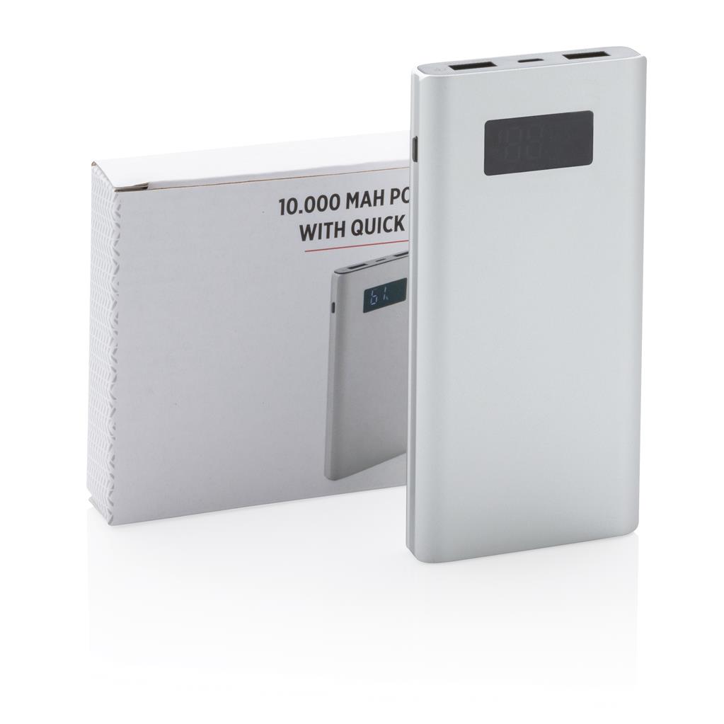 Hliníková powerbanka s lithium-polymerovou baterií o kapacitě 10 000 mAh s LCD displejem pro zobrazení zbývající energie. S 2 USB výstupy z nichž jeden je Quick Charge 3.0 pro extra rychlé efektivní nabíjení. Výstup: DC 5 V/3A, 9 V/2A, 12 V/1,5A, vstup 5V/3A. Včetně micro USB kabelu. 2 baterie typu Li-poly v balení.