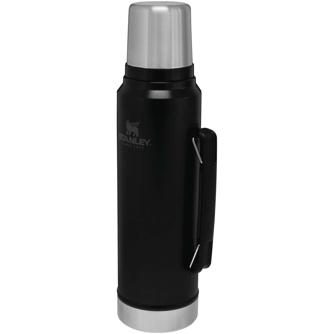 Litrová láhev Stanley má odolnou konstrukci a vakuovou izolaci, která udrží nápoje horké nebo studené po dobu 24 hodin. Láhev je dostatečně štíhlá pro držení jednou rukou a má otočné víko pro snadné nalévání. Izolované víčko může také sloužit jako šálek na pití. Láhev je vhodná do myčky, nepropustná, odolná proti potu, rozbití a snadno se čistí. Nerezová ocel.