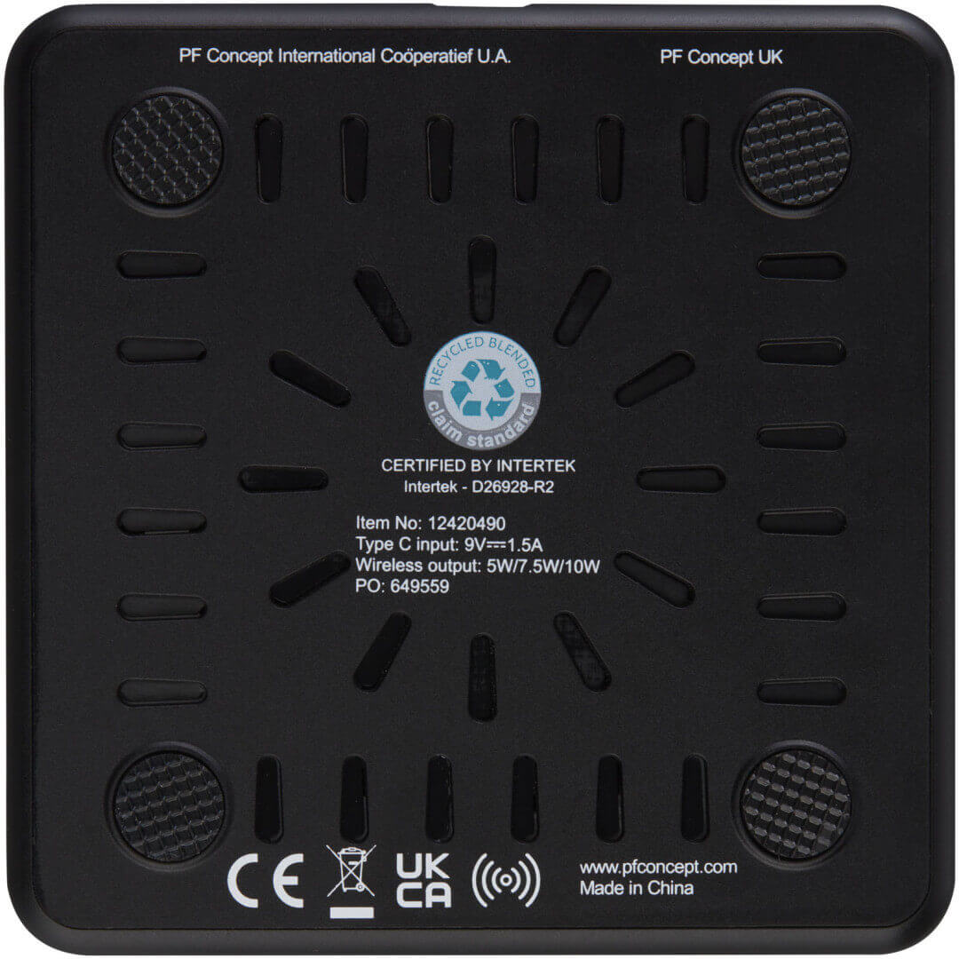 Bezdrátová nabíjecí podložka z recyklovaného ABS plastu s certifikací RCS. RCS (Recycled Claim Standard) je standard pro ověřování recyklovaného obsahu produktu napříč celým dodavatelským řetězcem. Nabíjet začnete tak, že nabíjecí podložku připojíte k počítači nebo notebooku a zařízení na ni položíte. Bezdrátový výkon pro rychlé nabíjení je 10 W (max.). Kompatibilní se všemi zařízeními Qi (iPhone 8 nebo vyšší a zařízení Android, která podporují bezdrátové nabíjení). Dodává se v dárkové krabičce včetně návodu (krabička i návod jsou vyrobené z udržitelných materiálů).
