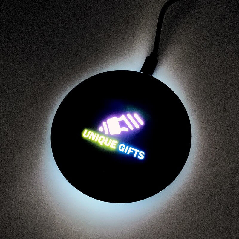 Rychlé nabíjení mobilního telefonu ještě nikdy nebylo jednodušší. Díky moderní bezdrátové rychlonabíjecí podložce (10 W) doplníte baterii energií pouhým položením mobilního telefonu. Podložka sama pozná vlastnosti vašeho mobilu a zvolí patřičnou rychlost nabíjení (5 W / 7,5 W / 10 W). Bezdrátová nabíjecí podložka má pogumovaný povrch, aby na ní mobil dobře držel a zbytečně se nepohyboval. Nabíjení funguje díky indukční bezdrátové technologii a mobilní zařízení, která ji nepodporují, je možné doplnit externím přijímačem. Pro originální vzhled nabíjecí podložky si můžete objednat libovolnou kombinaci barevného CMYK potisku a podsvíceného LED loga.