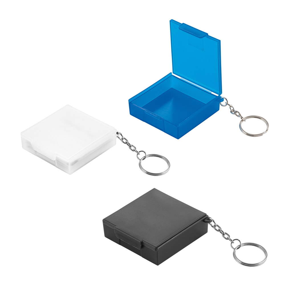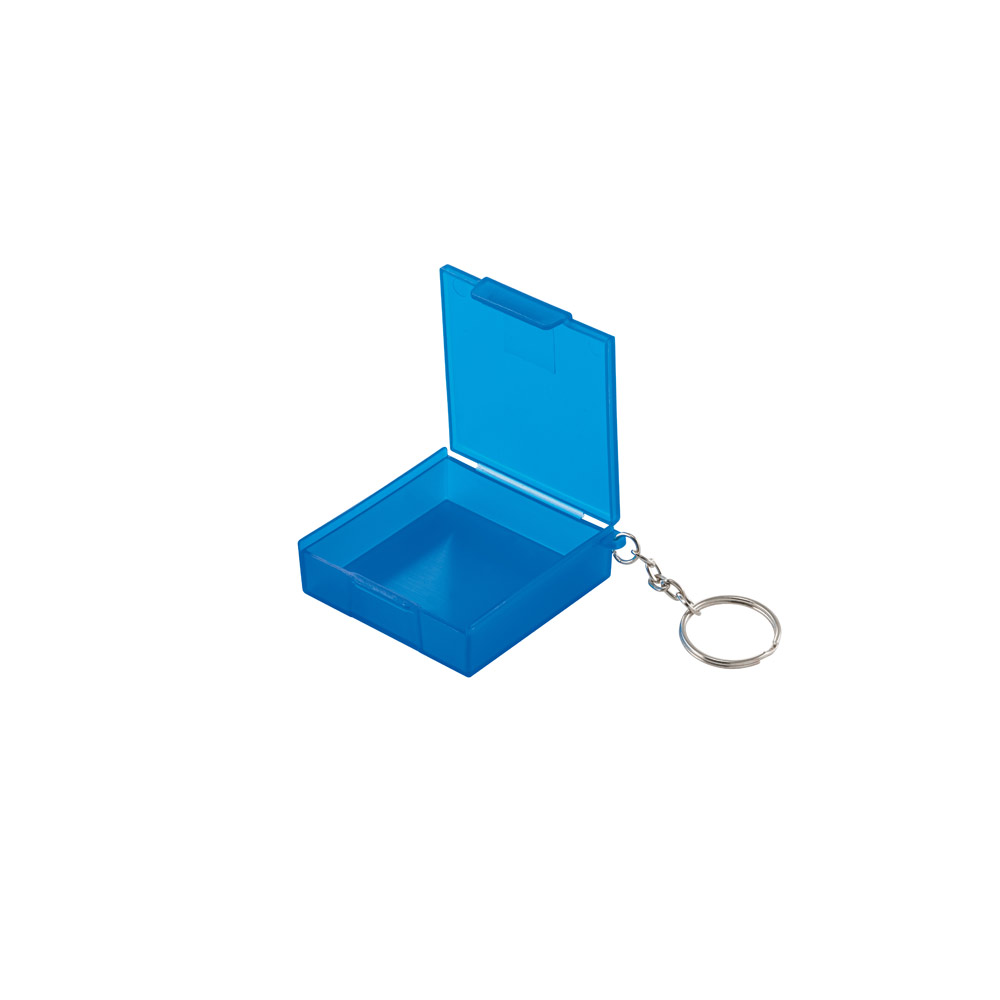 Praktická klíčenka s malou plastovou krabičkou, ideální na drobnosti jako tabletky, žvýkačky nebo mince. Díky kompaktní velikosti a kovovému kroužku ji snadno připnete na klíče, tašku nebo batoh. Dostupná ve třech barvách.