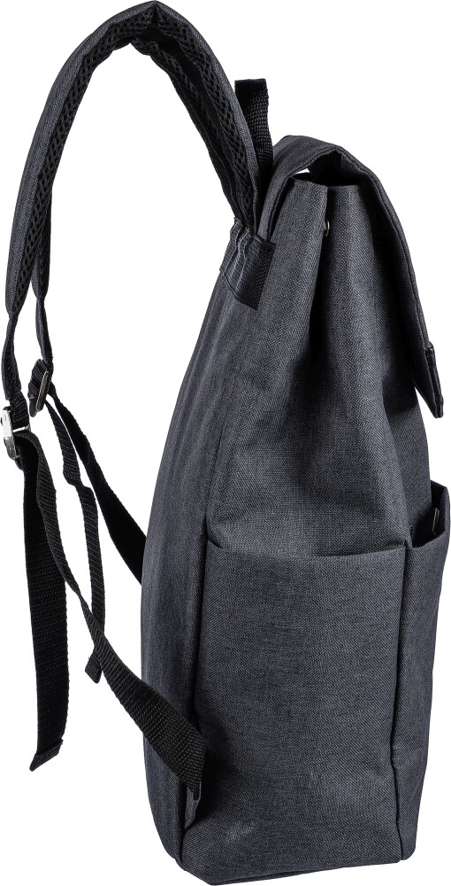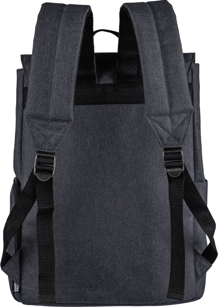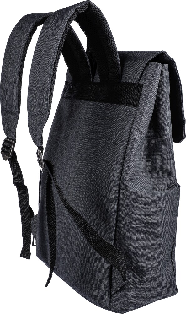 Batoh na notebook z 600D polyesterového plátna (15 palců) s PVC detaily a 210D podšívkou. Obsahuje malou přední kapsu na zip s karabinou na klíče, jednu boční přihrádku na zip, jednu běžnou boční kapsu a velkou přihrádku uzavíratelnou magnetem s kapsou na notebook. Pokud není batoh zcela naplněn, stiskněte tlačítka na boku pro uzavření batohu. Nastavitelné odvětrávané popruhy. Obsahuje štítek rPET na přední straně.Rozměry: 15 x 30,5 x 42 cm