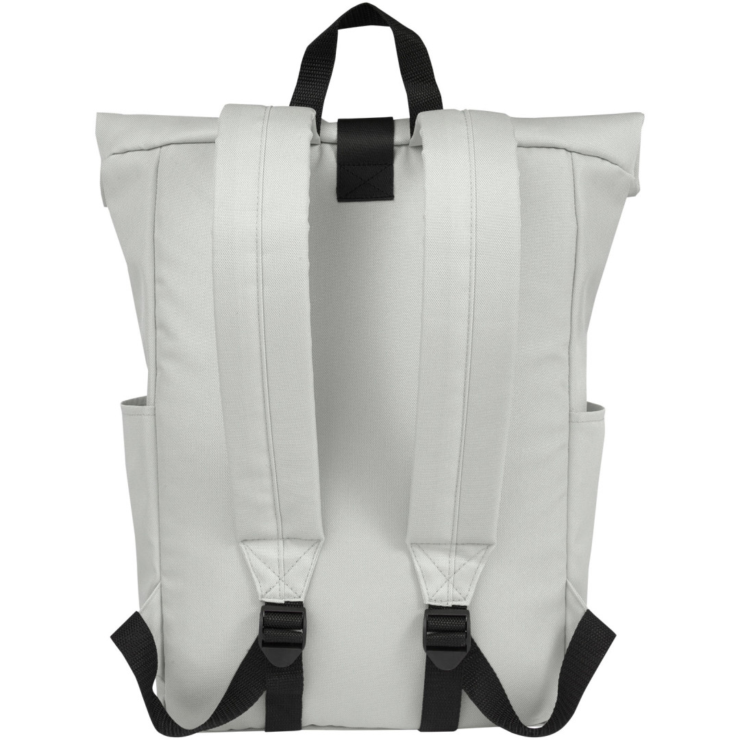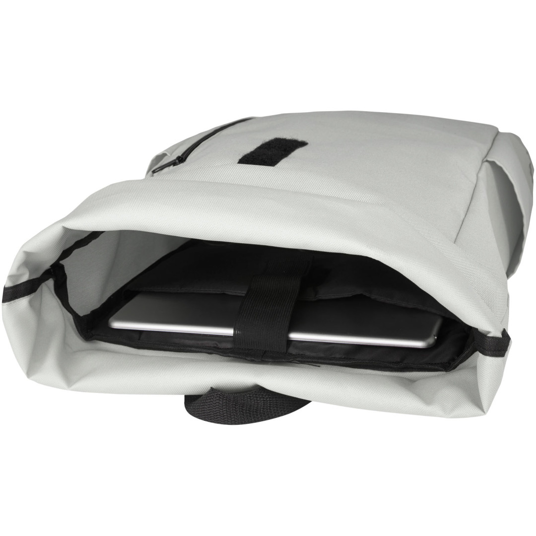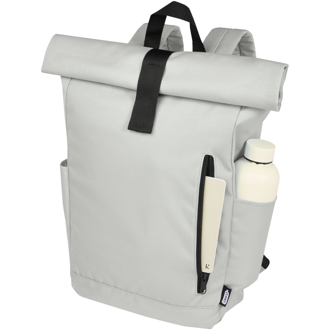 Praktický, pevný a voděodolný batoh na kolečkách z recyklovaného polyesteru GRS s velkou vnitřní přihrádkou na 15,6" notebook, přední kapsou na zip a 2 bočními kapsami. Polstrovaná zadní strana, nastavitelné a polstrované ramenní popruhy, poutko na přenášení a praktický rolovací uzávěr s kliknutím na horní straně. Ideální taška pro každodenní použití s minimální ekologickou stopou.