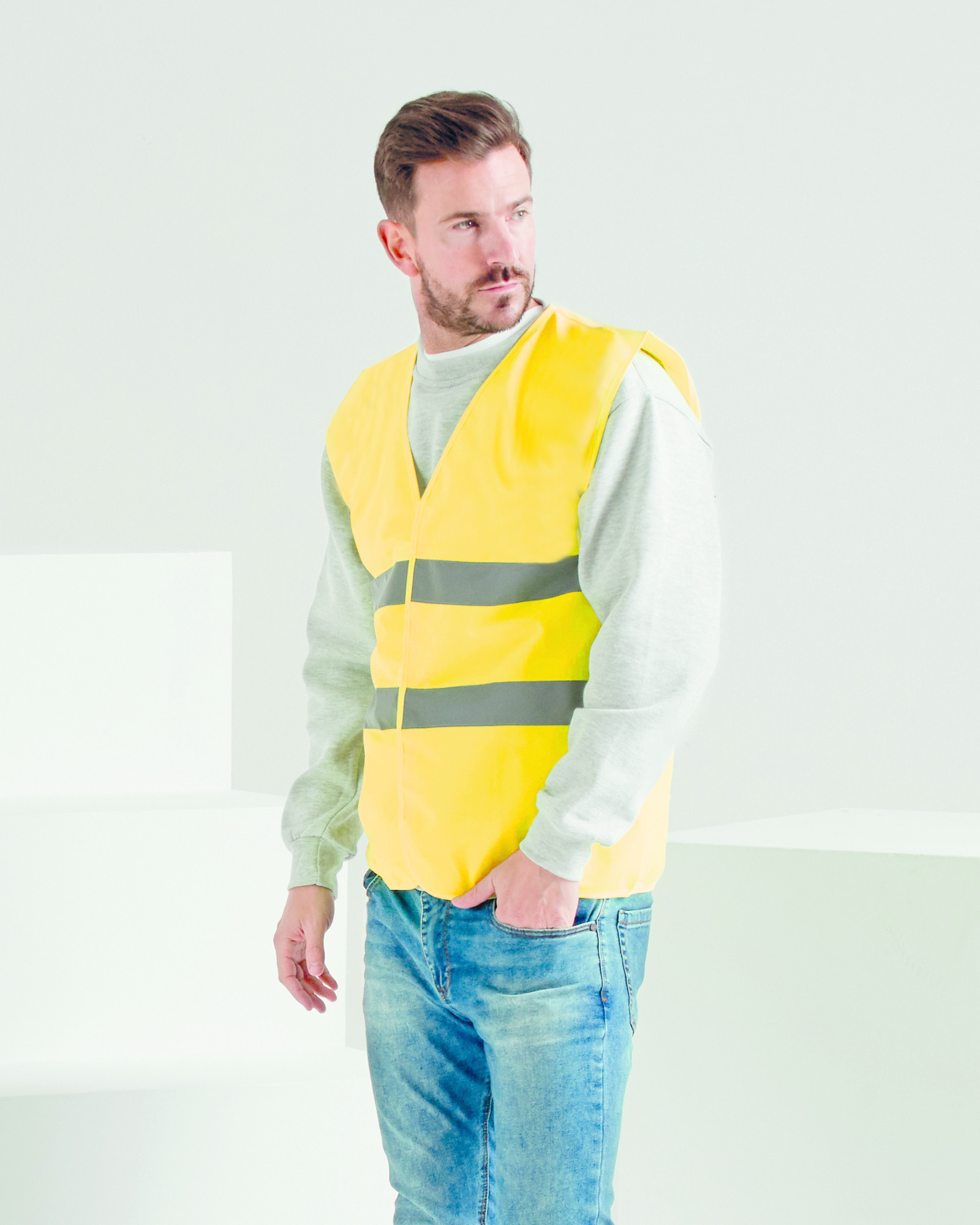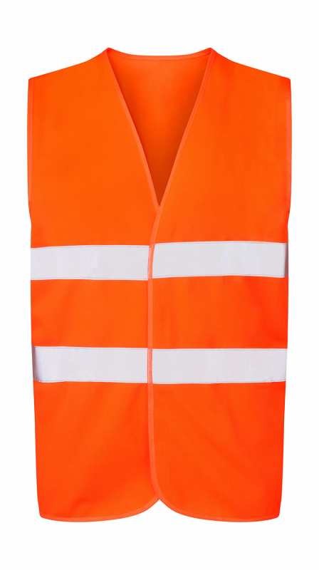 120 g / m² · 100% polyester · suchý zip · reflexní páska široká 5 cm kolem těla · Vhodné pro sítotisk a přenosový tisk · Velikosti S-XL: EN ISO 20471: 2013 třída 1 · Velikosti 2XL-5XL: EN ISO 20471: 2013 třída 2.
