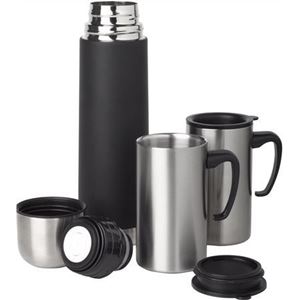 500 ml termoska s 2 dvoustěnnými hrníčky o objemu 260 ml. Nerezová ocel v nylonovém pouzdře. Nelze mýt v myčce nádobí.