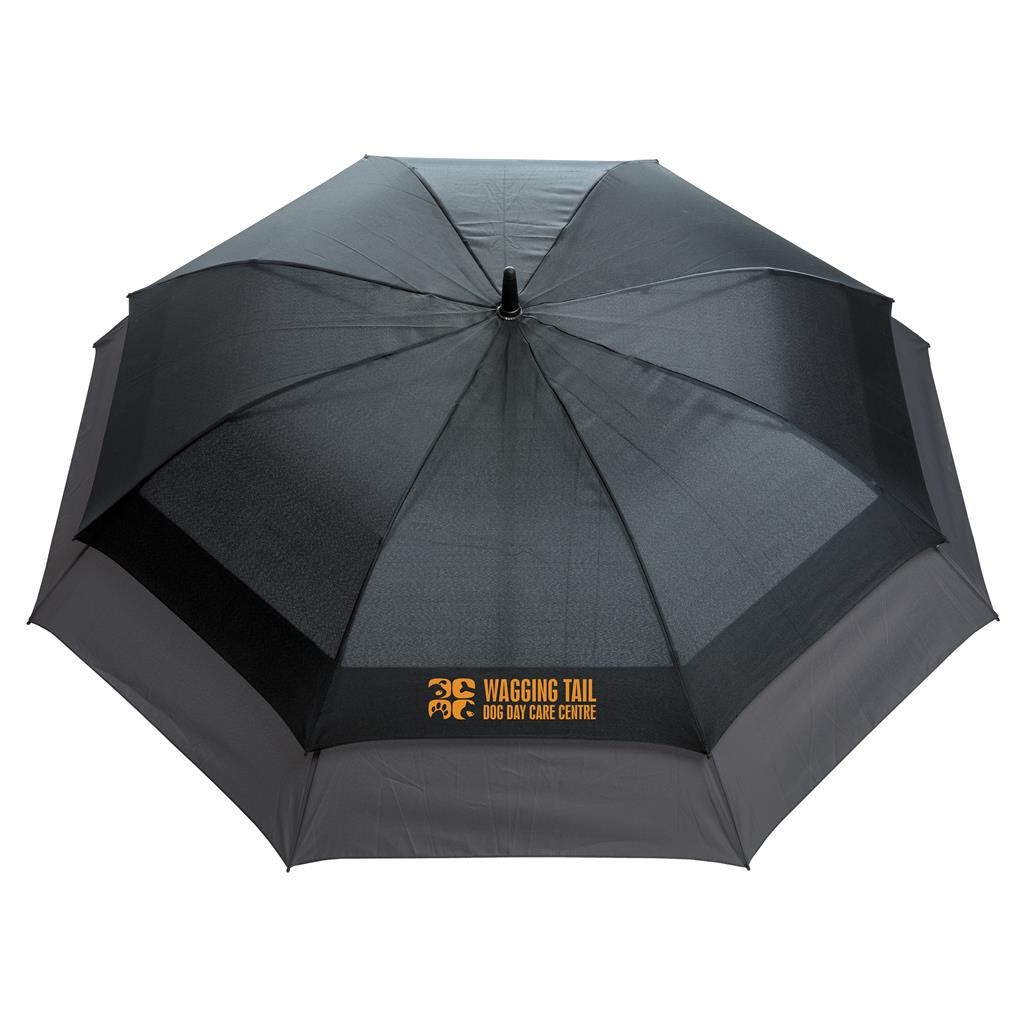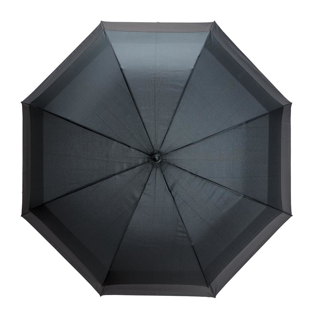 Unikátně provedený deštník, který ve složeném stavu zabírá místo jako 23", po otevření se rozšíří na velikost 27" deštníku, ideální pro 2 osoby. Automatické otevírání, manuální zavírání. Kovová tyč, žebra ze sklolaminátu odolná silnému větru, koncovky z PP, matné černé madlo. Vyrobeno z recyklovaného polyesteru 190T pongee včetně skenovatelné složky AWARE™ garantující obsah recyklátu. 2 % z výnosů z každého prodaného kusu je přispěno na iniciativu Water.org.