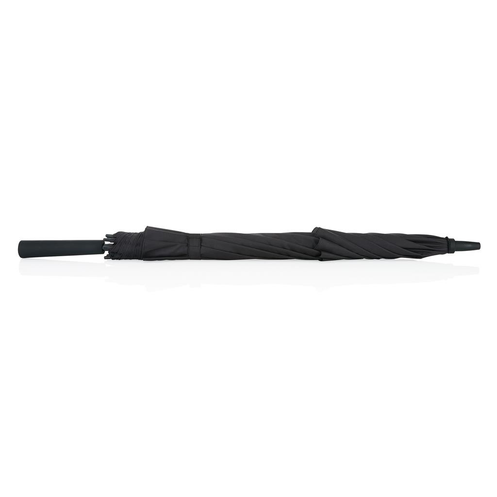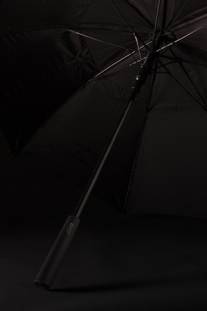 Spolehlivý velmi pevný deštník Tornado 23" s automatickým otevíráním a manuálním zavíráním. Kostra vyrobena z hliníku, žebra ze sklolaminátu odolná i proti silnému větru, pogumované madlo. Swiss Peak pouzdro pro pohodlné skladování. Vyrobeno z recyklovaného polyesteru 190T pongee včetně skenovatelné složky AWARE™ garantující obsah recyklátu. 2 % z výnosů z každého prodaného kusu je přispěno na iniciativu Water.org. Baleno v FSC dárkové krabičce Swiss Peak.