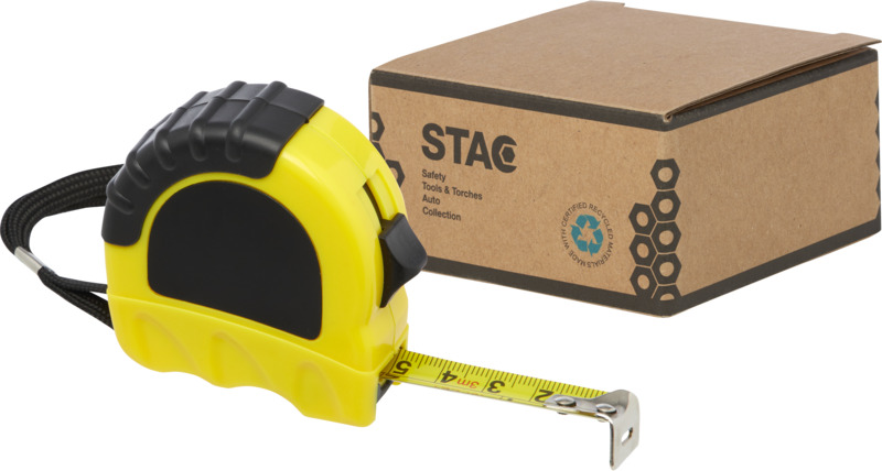 3metrové ocelové a železné měřicí pásmo včetně železné spony na opasek a polyesterového řemínku na zápěstí. Zobrazuje centimetry a palce. Pouzdro je vyrobeno z 21 % z recyklovaného plastu s certifikací RCS a ze 4 % z recyklovaného TPE. Standard Recycled Claim Standard (RCS) ověřuje recyklovaný obsah produktu v celém dodavatelském řetězci. Zabaleno v dárkové krabičce STAC z udržitelných zdrojů.