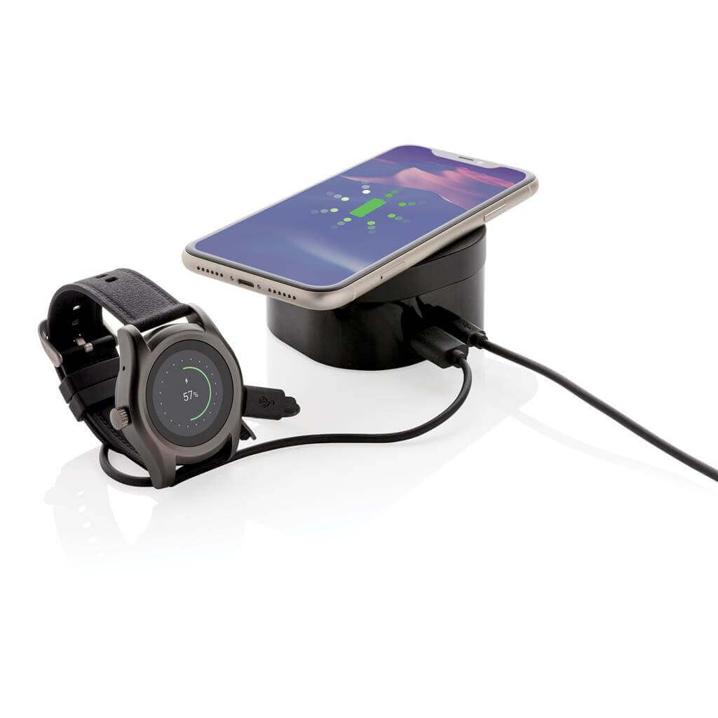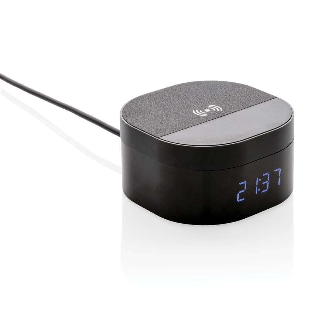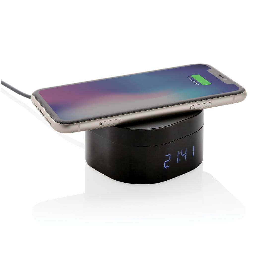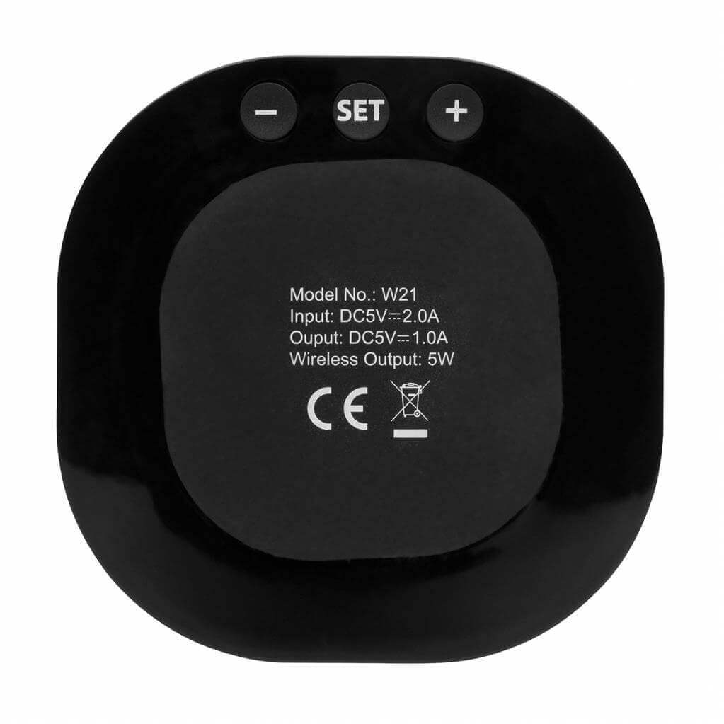 Skandinávský design kloubící se s propracovanou technologií. Bezdrátová nabíječka s integrovaným digitálním budíkem je ideální k umístění na váš pracovní stůl nebo noční stolek. Vyrobeno z luxusního hliníku s PU detaily. Včetně 1,5m dlouhého micro USB kabelu. Bezdrátové nabíjení je kompatibilní s nejnovější Android generací a s iPhone 8 a výše. Vstup: 5V/2A. Bezdrátový výstup: 5V/1A 5W. Baleno v luxusní dárkové krabičce. Ochranný vzor® 1 baterií typu Li-ion súčasťou balenia.
