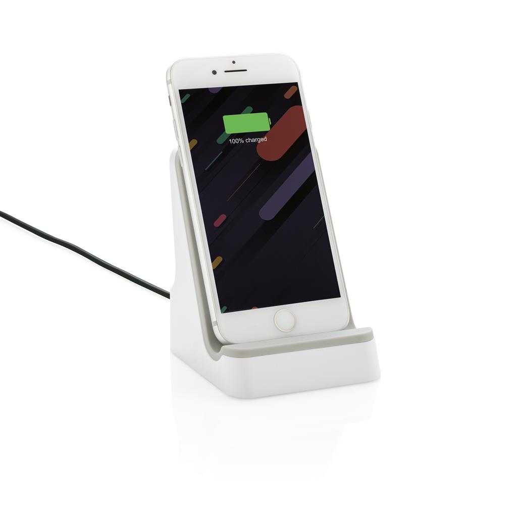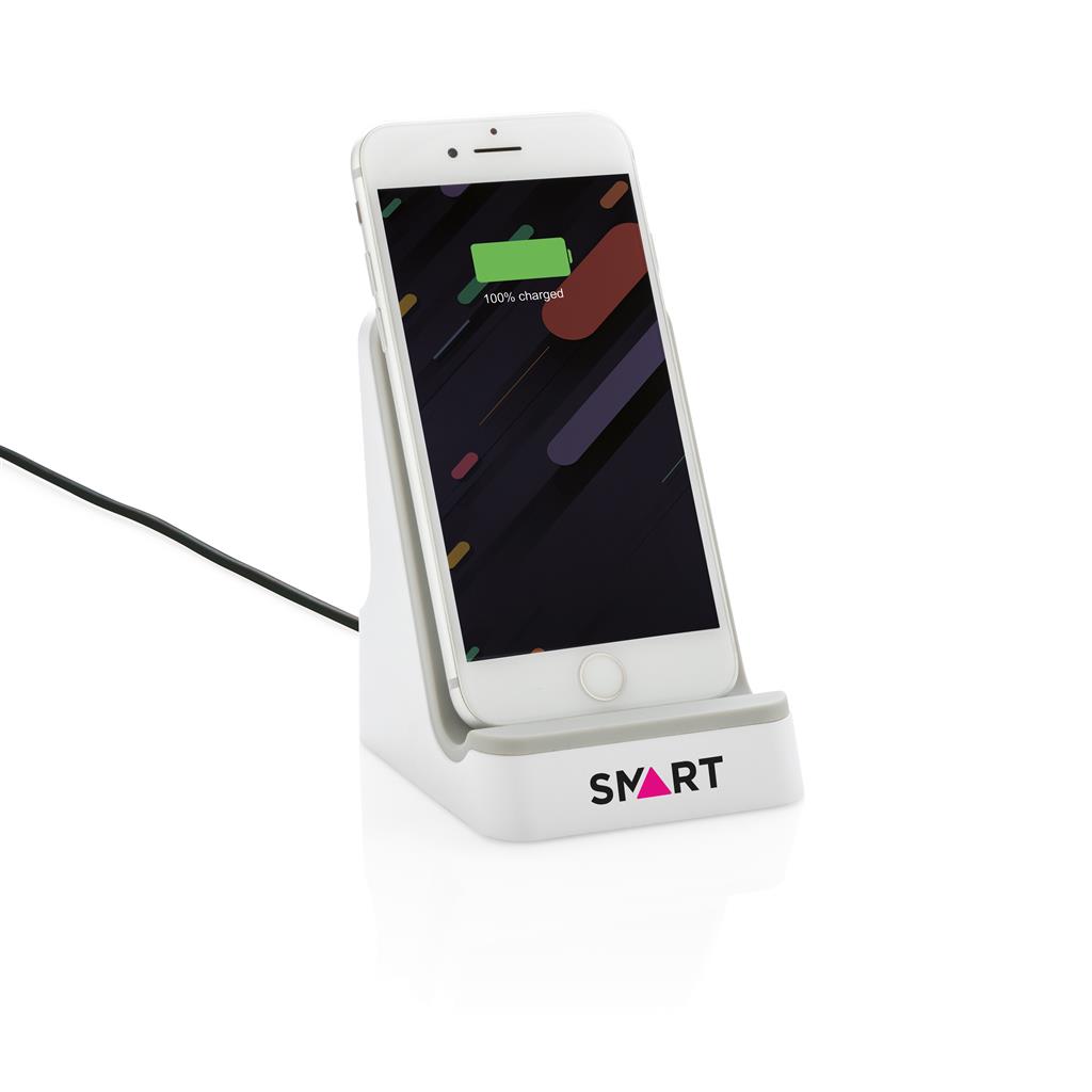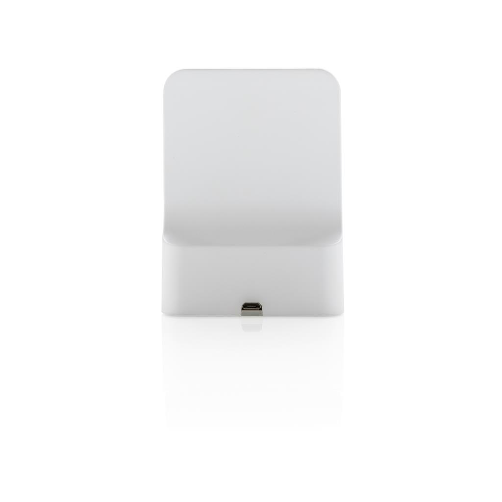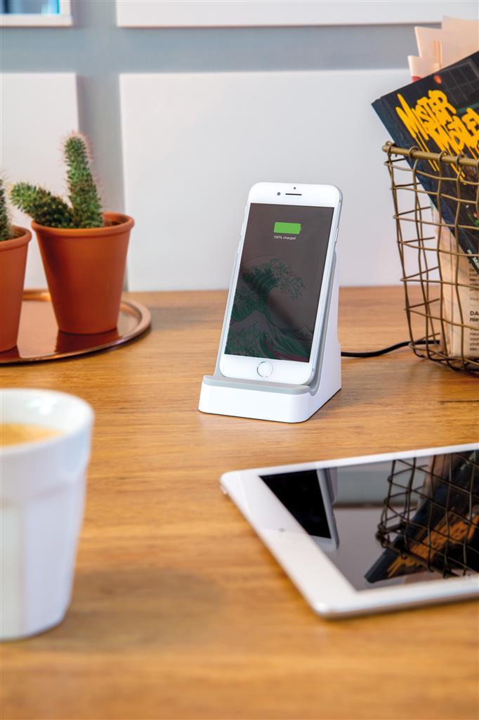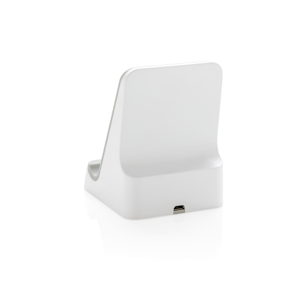 Nabíjejte bez použití jakýchkoliv kabelů pouhým položením telefonu do nabíjecího stojánku. Stojánek jednoduše připojte micro USB kabelem ke zdroji napájení, čímž je tak kdykoliv připraven k použití. Vyrobeno z ABS. Kompatibilní se všemi zařízeními podporujícími QI, jako jsou nejnovější generace Android, iPhone 8 a výše. Vstup 5V/1.5A, bezdrátový výstup: 5V/1A 5W. Včetně micro USB kabelu. PMS color 1: White