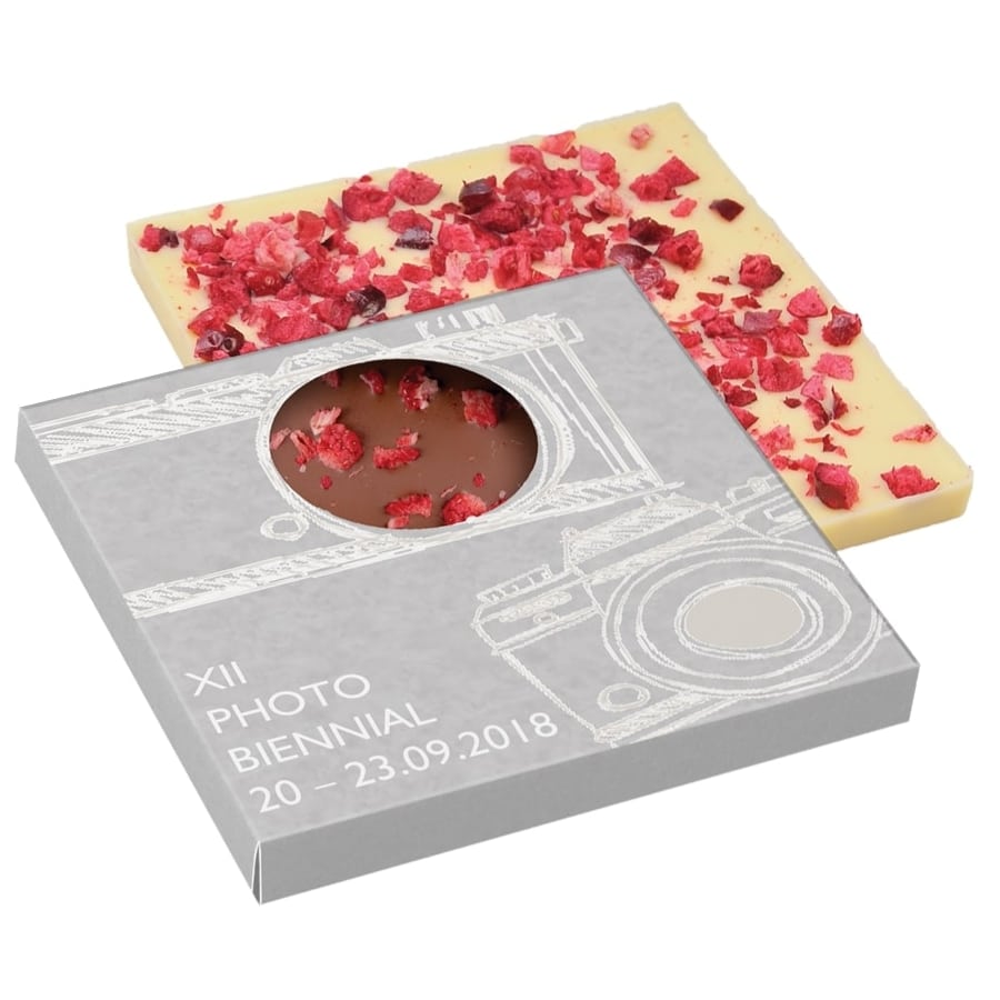 Při hledání působivého dárku pro klienty nebo obchodní partnery nelze nezastavit u této tabulky čokolády. Tabulka vynikající čokolády s přísadami je dostupná ve čtyřech variantách: mléčná, dezertní, bílá a především rubínová.
