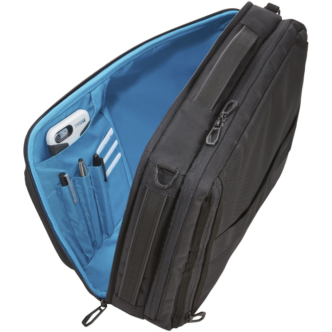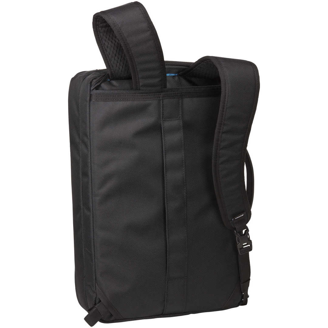 Hybridní taška, kterou lze použít jako batoh nebo tašku na notebook. Hlavní přihrádka je uzavíratelná na zip a obsahuje polstrované pouzdro na notebook o velikosti 15,6" a vyhrazenou kapsu na tablet o velikosti 10". Dodává se s přihrádkou SafeZone s dodatečnou ochranou pro telefon, sluneční brýle nebo jiné cennosti. Obsahuje průvlek pro vozík, polstrovaný zadní panel a odnímatelný polstrovaný ramenní popruh.