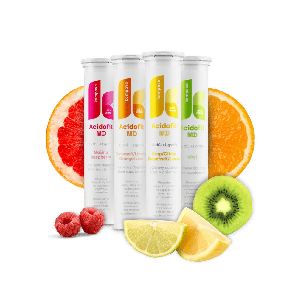 Vitaminovo-minerální šumivý nápoj pro odkyselení, detoxikaci a hydrataci organismu. Obsahuje vápník, hořčík, draslík, sodík, fosfor, vitamíny B1, B2, B3, B6, B12, C, E, H (biotin), folát, extrakt ze zeleného čaje, aloe vera a alfalfa. Podporuje acidobazickou rovnováhu, normální funkci svalů a imunitu. Balení: 15+1 tablet. Příchutě: malina, kiwi, grep-citron, pomeranč-limetka, mix (uveďte do poznámky při objednávce)