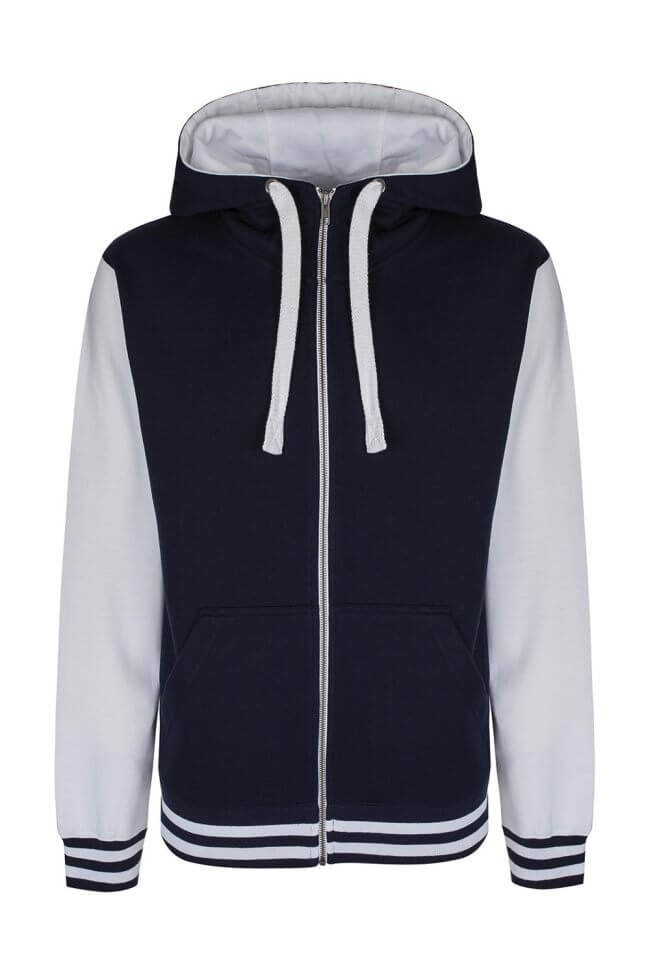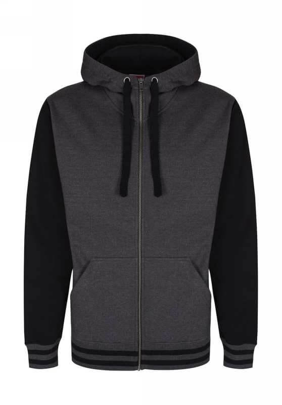 ·300 g/m² ·80% bavlna, 20% polyester ·vysoká kapuce (3 dílná) s kontrastní podšívkou a plochými šňůrkami ·kontrastní výztužná páska za krkem ·kontrastní poutko na zádech ·kontrastní vložené rukávy ·YKK kovový zip s kontrastní páskou ·přední kapsy ·kontrastní manžety s spodní lem ·dvojité prošití