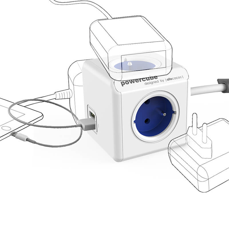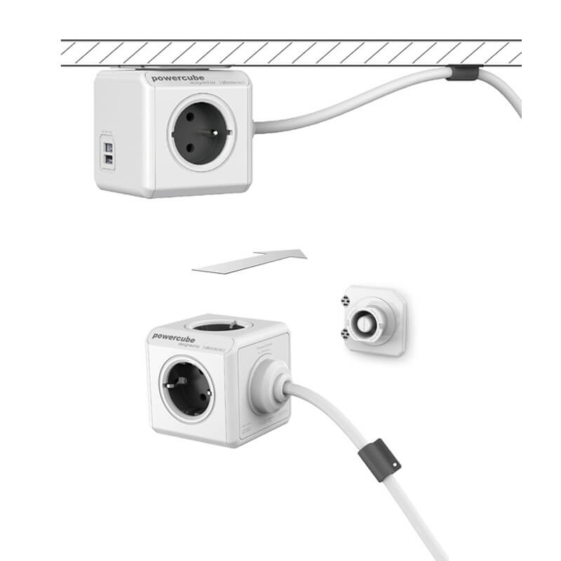 POWER CUBE EXTENDED. Praktická a moderní zásuvka v podobě krychle s přívodním kabelem a možností upevnění na potřebné místo. Nabízí 4 AC zásuvky (unikátní design PowerCube zajišťuje, že se zástrčky navzájem neblokují) a dva výkonné USB porty (2.1A), které umožní nabíjení dvou zařízení najednou. Můžete tak dobíjet širokou škálu zařízení, včetně tabletů a smartphonů (jako je iPhone a iPad). Doba nabíjení bude kratší než při nabíjení přes USB port na vašem notebooku. Navíc balení obsahuje montážní dok pro jednoduché uchycení na potřebné místo. Odpadne tak věčné ohýbání pod stůl pro připojení elektroniky do zásuvky.
