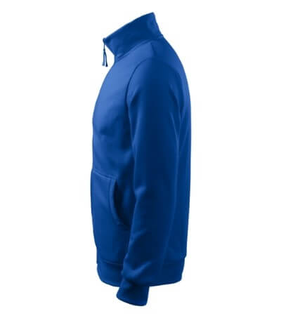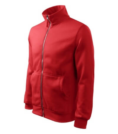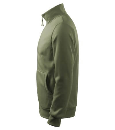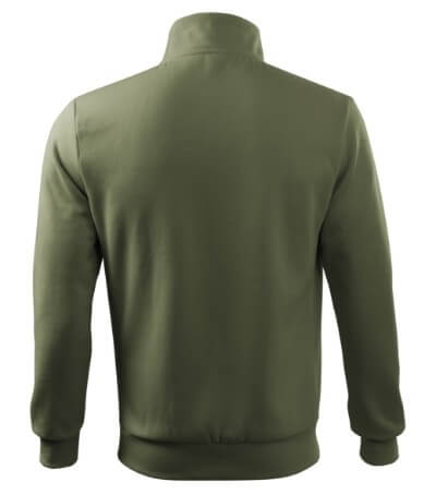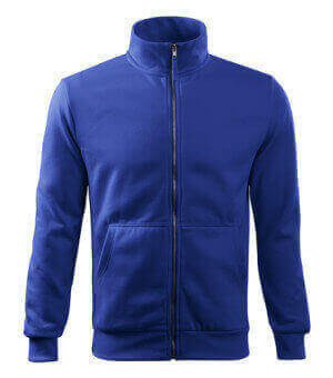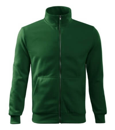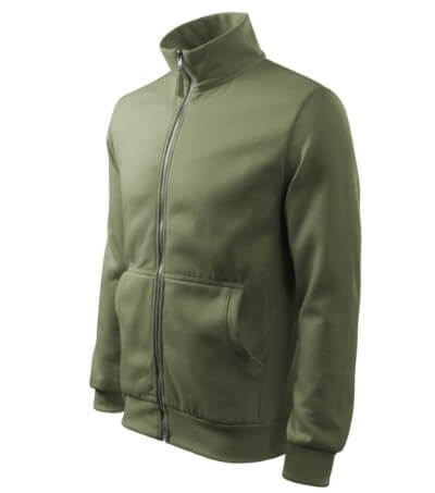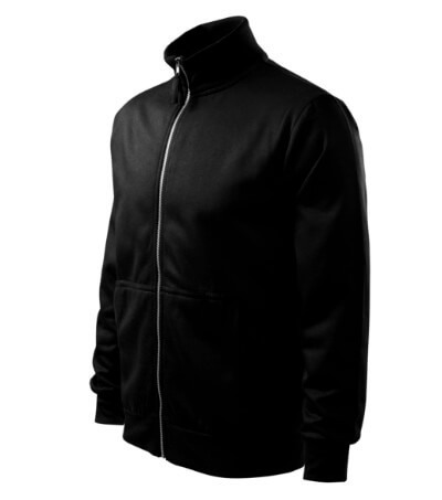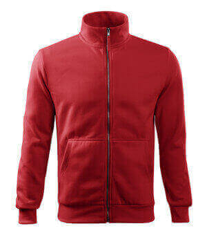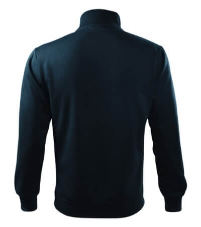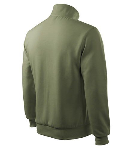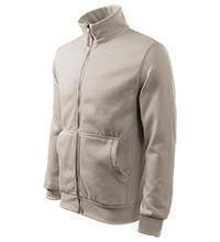 300 g / m2, 65% bavlna, 35% polyester, vnitřní strana počesaná, Single Jersey - Kvalitní stylová mikina s límcem z žebrového úpletu. Celopropínací. Hlavicový rukáv. Vnitřní strana počesaná. Boční díly, spodní lem, manžety rukávů a lemy kapes z žebrového úpletu. Dvě přední kapsy.