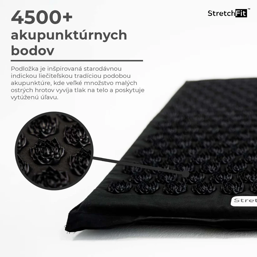 Die AcuMAT™ Akupressur-Massagematte hilft, Muskelverspannungen zu lösen, Stress abzubauen und Schmerzen in Rücken, Nacken und Beinen zu lindern. Tausende Akupressurpunkte regen die Durchblutung an und unterstützen die natürliche Regeneration des Körpers. Regelmäßige Anwendung verbessert den Schlaf, das allgemeine Wohlbefinden und die Vitalität. Leicht, kompakt und für den täglichen Gebrauch zu Hause und im Büro geeignet. Erhältlich in zwei Farben: Schwarz und Grau. Maße: ca. 680 × 420 mm.
