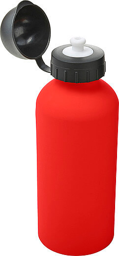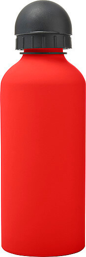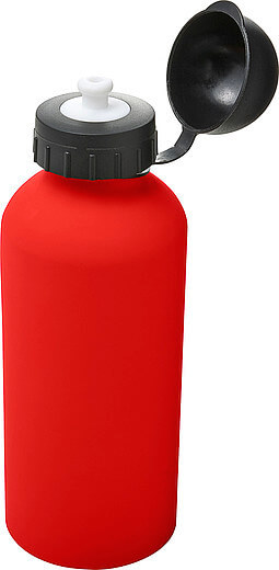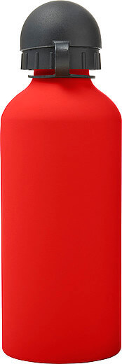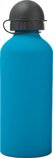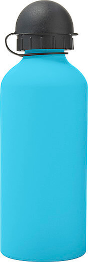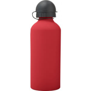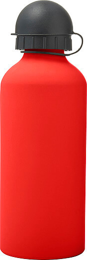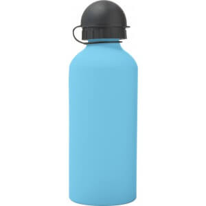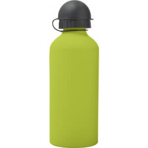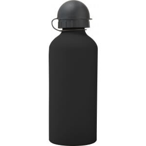 Hliníková láhev na vodu (600 ml) s gumou, jemným povrchem a černým uzávěrem na pití.