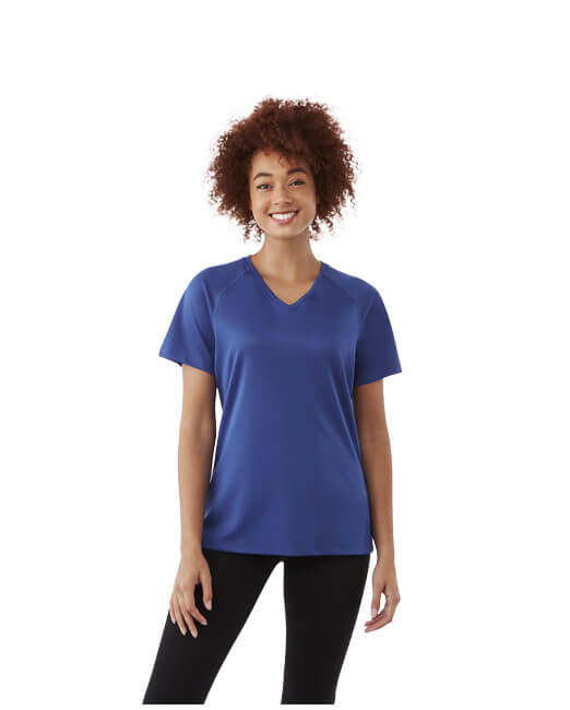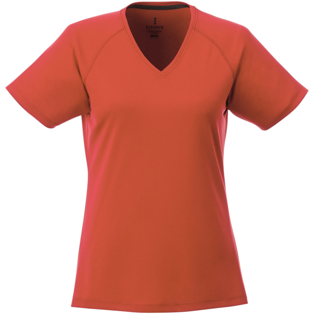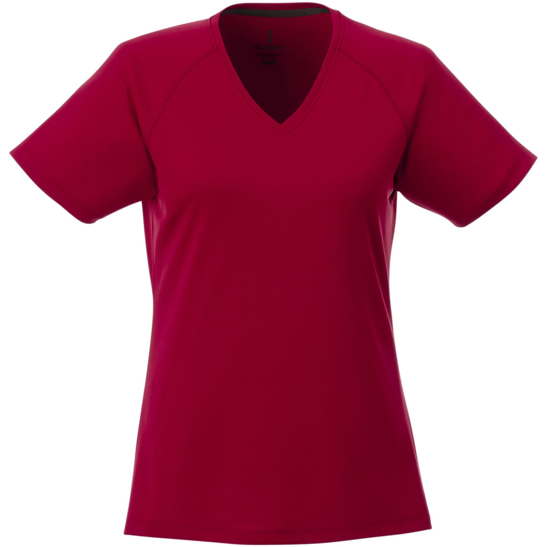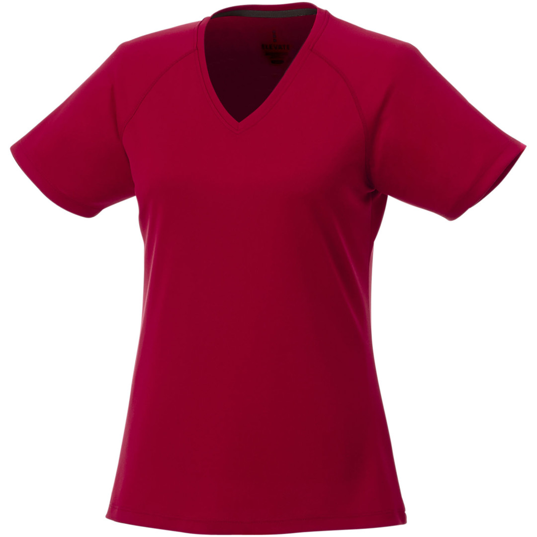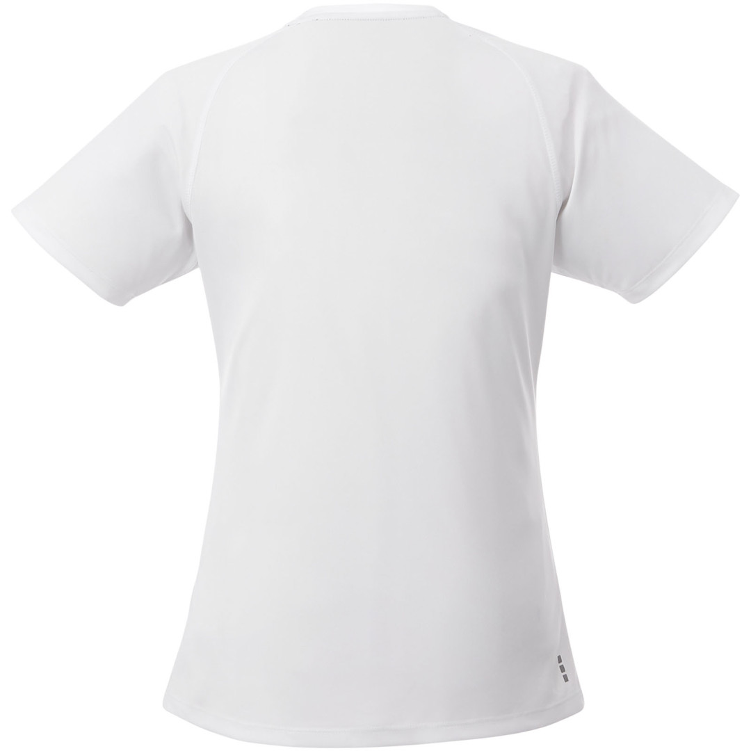 Kolárek ve shodné tkanině. Výstřih ve tvaru V. Raglánové rukávy. Úzký plochý steh. Saténová lemovka výstřihu. Reflexní detaily. Potisk štítku technologií heat transfer pro větší pohodlí. Síťovina s úpravou Cool...