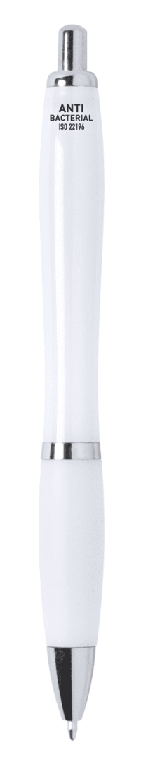 Plastové kuličkové pero s antibakteriální úpravou na těle a chromovými částmi. Obsahuje přísadu nano stříbra, které zabraňuje růstu bakterií na těle pera. Se stiskacím mechanismem a modrou náplní. V souladu s ISO 22196: 2011.
