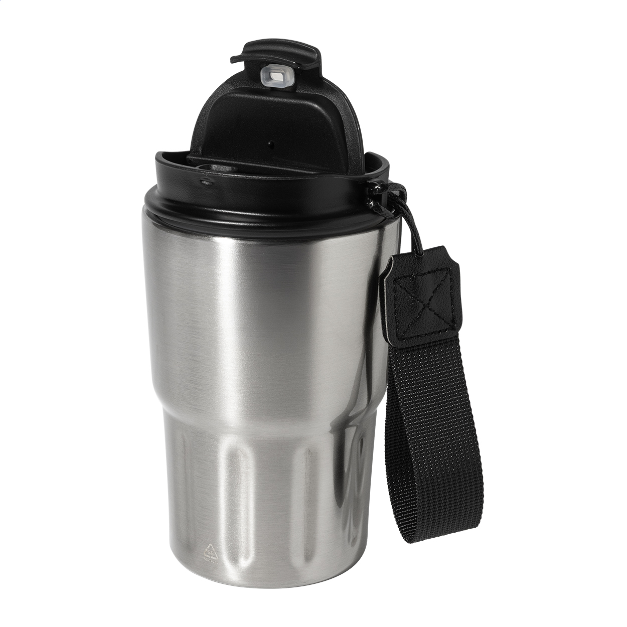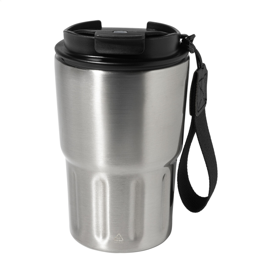 Dvoustěnný termo hrnek z recyklované nerezové oceli s izolačním víčkem z PP. S poutkem z RPET polyesteru. 350 ml. New. Go Green. Vhodné do myčky nádobí: Ne. Vhodné do mirkovlnné trouby: Ne. Typ stěny: Dvojitá stěna. Typ izolace: Vakuová izolace. Doba izolace za studena: 10 hodin. Doba izolace za horká: 6 hodin. Odolné vůči polití / nepropustné: Odolné vůči polití