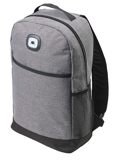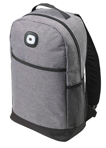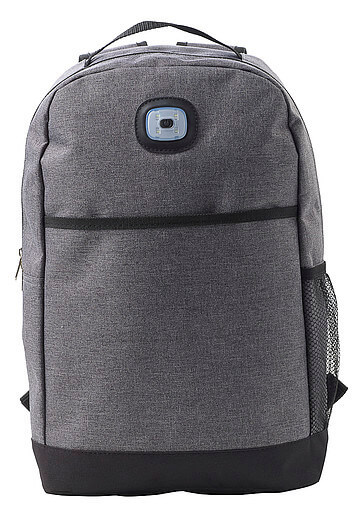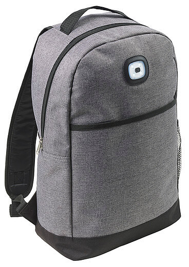 Polyesterový (300D + 210D) batoh s nastavitelnými a polstrovanými ramenními popruhy a zády. Velká hlavní přihrádka, přední kapsa a boční síťovaná kapsa. Batoh má COB světlo se dvěma nastaveními barev: bílá a blikající červená. Včetně baterií.