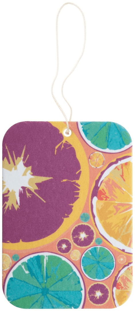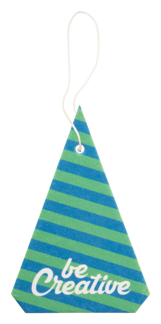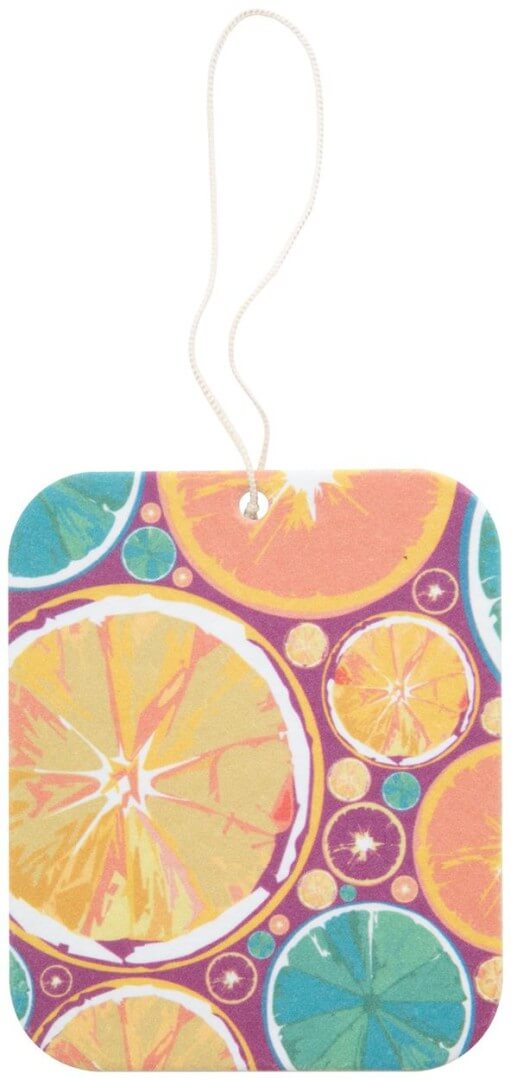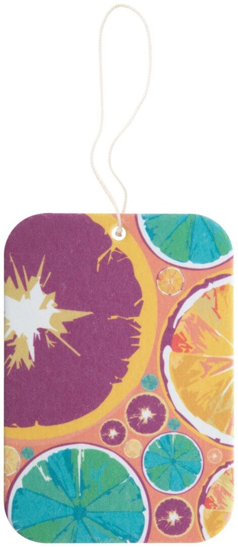 Aromatická visačka do auta na zakázku s výběrem vlastního tvaru a vůně (zelené jablko, tropická, mentol, citron, oceán, nové auto, jahoda, broskev, vanilka). Potištěno až 4mi barvami na každé straně. Min. mn.: 300 ks.