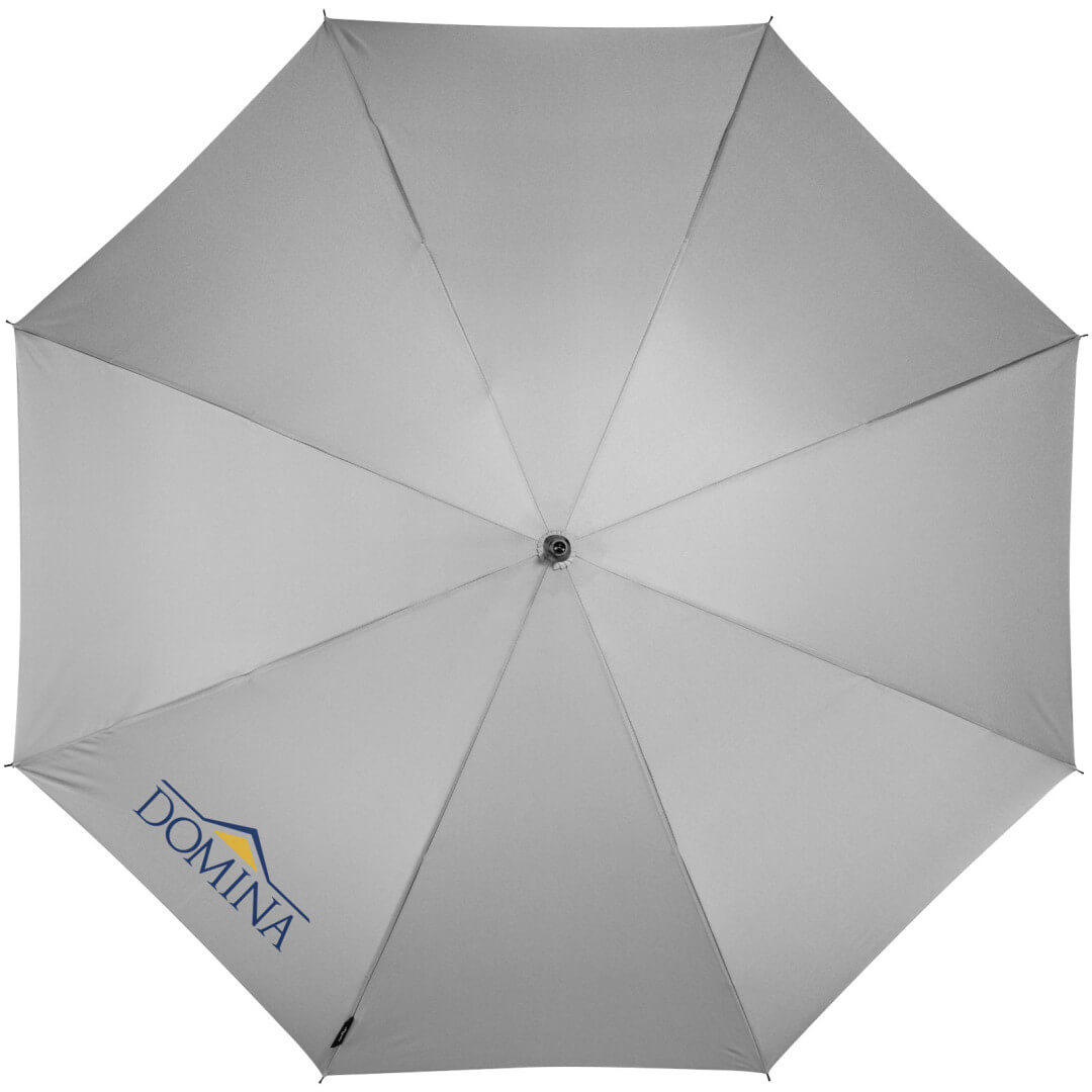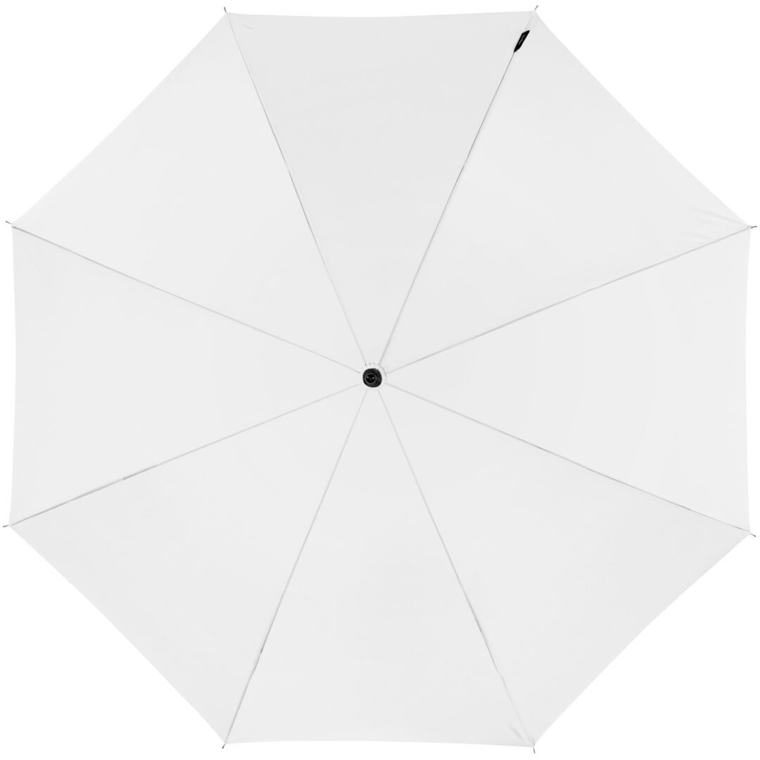 Exkluzivní design, deštník s funkcí automatického otvírání. Kovové kopí a žebra. Zvláštní design rukojeti k zavěšení deštníku na stůl. Zakřivená rukojeť potažená pryží s hliníkovými prvky. Pouzdro ve shodné barvě. Pongee Polyester.