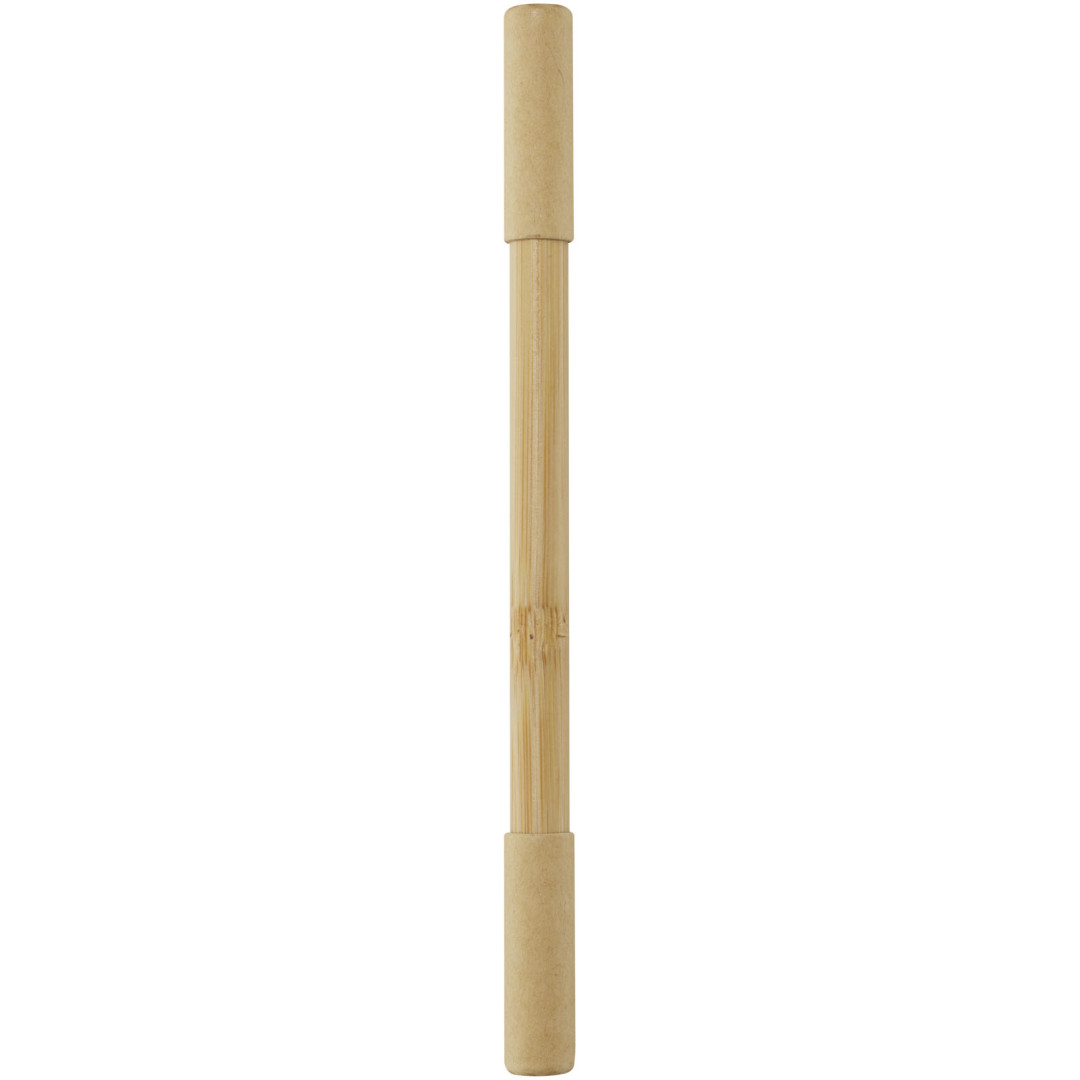 Bambusové duo pero Samambu má dvě hlavy: 1 kuličkové pero a 1 bezinkoustové pero. Bezinkoustová strana nevyžaduje inkoustové bombičky ani náplň. Grafitově černá špička pera je navržena tak, aby zanechávala viditelné stopy při kontaktu s povrchem pro psaní. Výběr pera vyrobeného z bambusu je udržitelnější rozhodnutí a podporuje používání obnovitelných materiálů. Kuličkové pero má černý inkoust, velikost hrotu 1,00 mm a délku psací stopy 600 metrů. Délka psací stopy bezinkoustového pera: 1500 metrů.