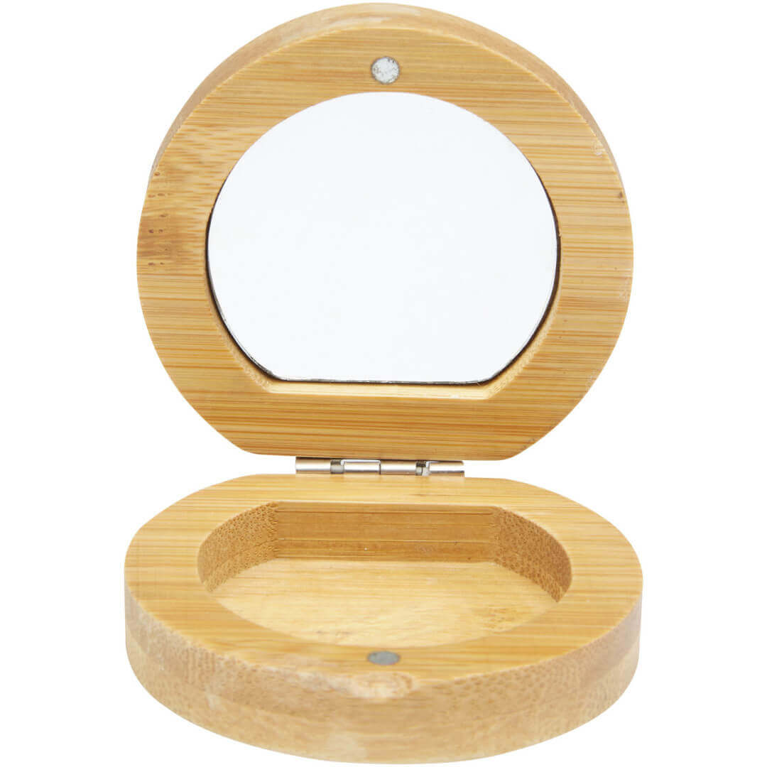 Kompaktní kapesní bambusové zrcátko pro cestování nebo každodenní péči o pleť nebo použití make-upu. Ve spodní části zrcátka je malá přihrádka na drobné příslušenství. Použitý bambus se získává a vyrábí v souladu se zásadami udržitelnosti.