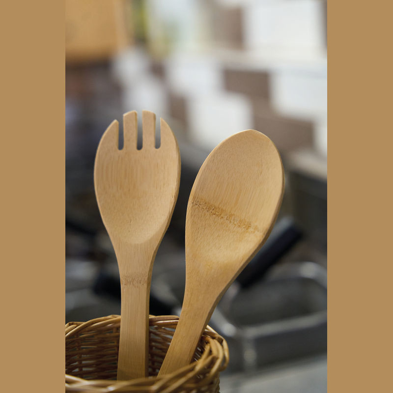 Bambusový set pro servírování salátů. Logo umístíme na rukojeť lopatky. Jednotlivě baleno v plastovém sáčku. Upozorňujeme, že barva gravírování jednotlivých kusů se může lišit při gravírování přírodních materiálů.