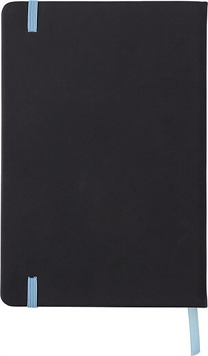 Poznámkový blok A5 s tvrdými PU deskami a 96 linkovanými stranami, barevnou záložkou a barevnou gumičkou na uzavření. Po vylaserování loga do bloku bude mít Vaše logo stejnou barvu jako gumička. Doporučená technologie tisku: tampontisk T2, laser L2. Maximální velikost tisku: 50 x 40 mm. Rozměry: 14 × 21 × 1,5 cm. Kartonové množství v ks: 50.