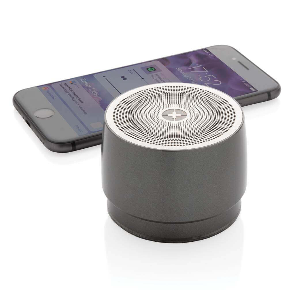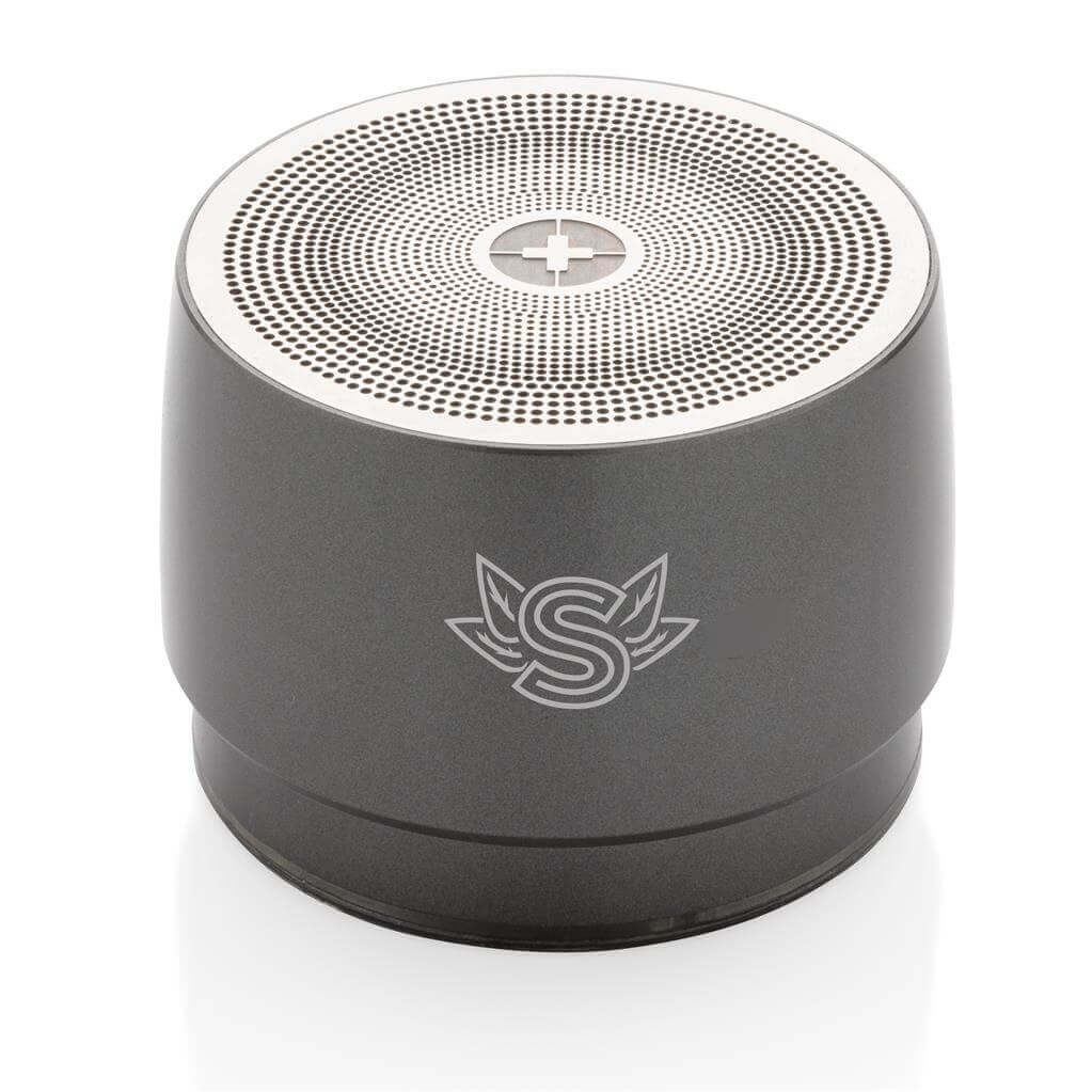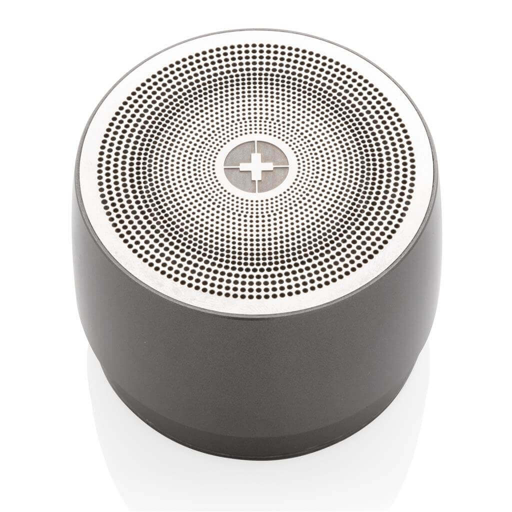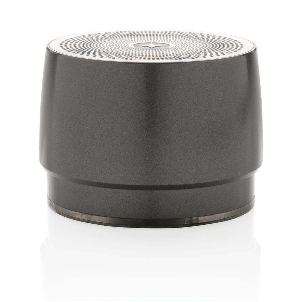 Kompaktní 5W reproduktor s překvapivě čistým zvukem s plným rozsahem. Zabudovaný subwoofer ve spodní části pro extra zvýraznění basů. Vyroben z kvalitní nerezové oceli dodávající masivní vzhled. 650 mAh baterie umožňuje přehrávání hudby po dobu až 5 hodin na jedno nabití. BT 5.0 pro hladké bezdrátové připojení na vzdálenost až 10 metrů. Včetně micro USB nabíjecího kabelu z TPE (PVC free). 1 baterií typu Li-ion súčasťou balenia. PMS color 1: 444, PMS color 2: 877