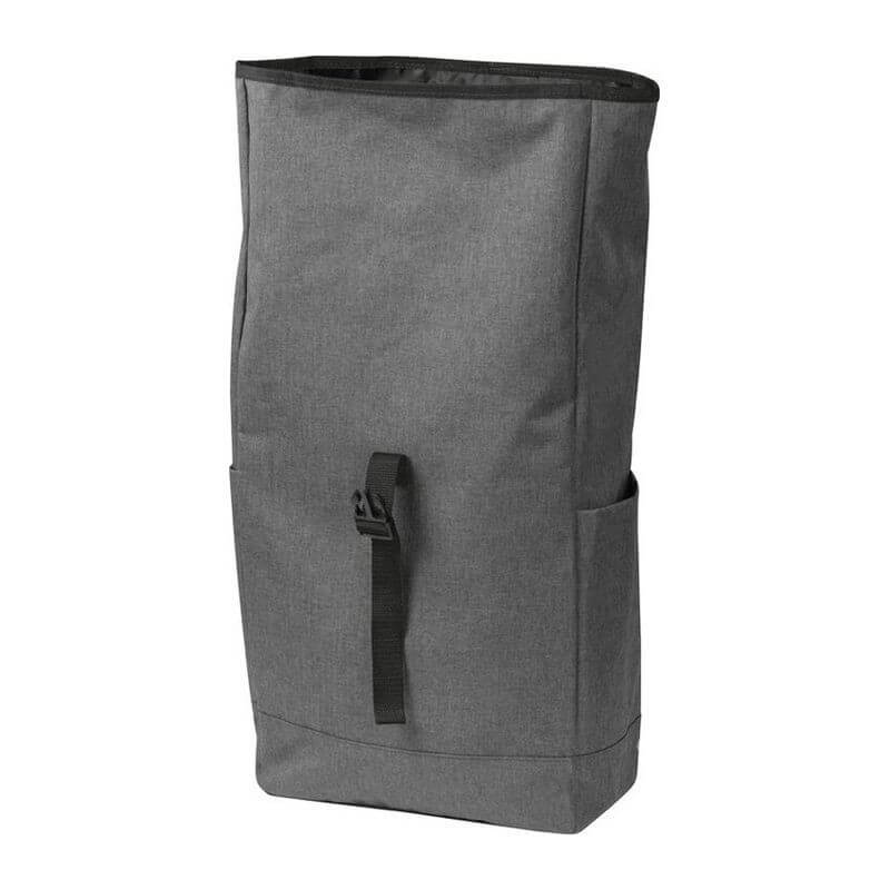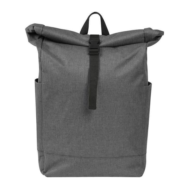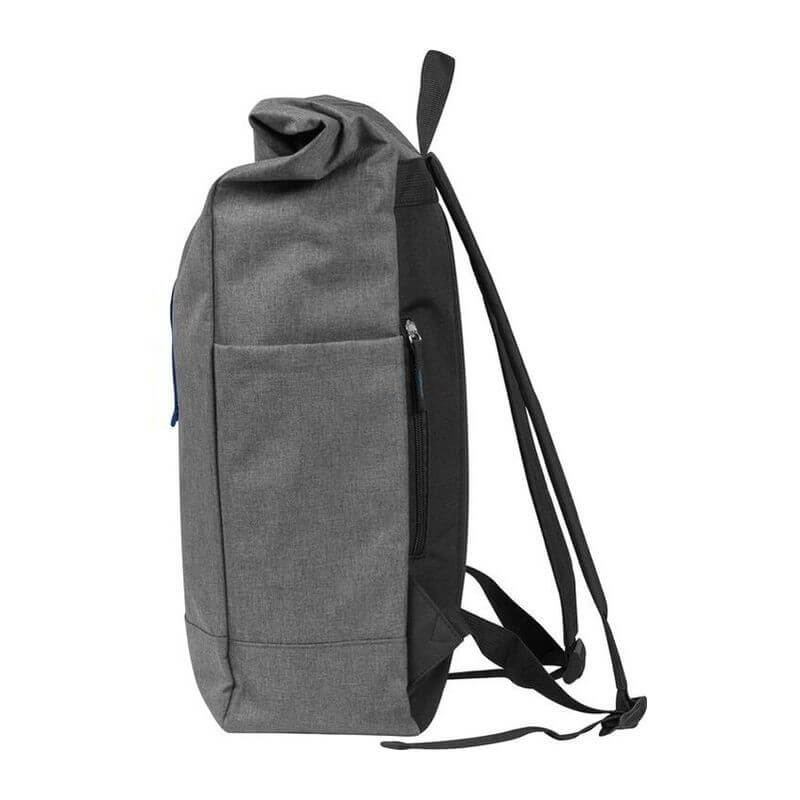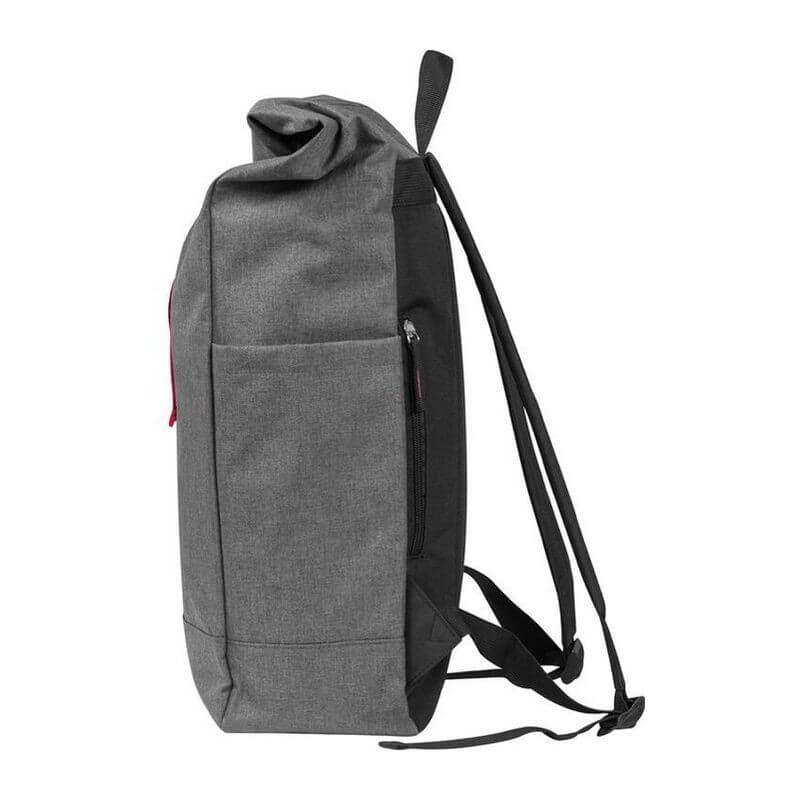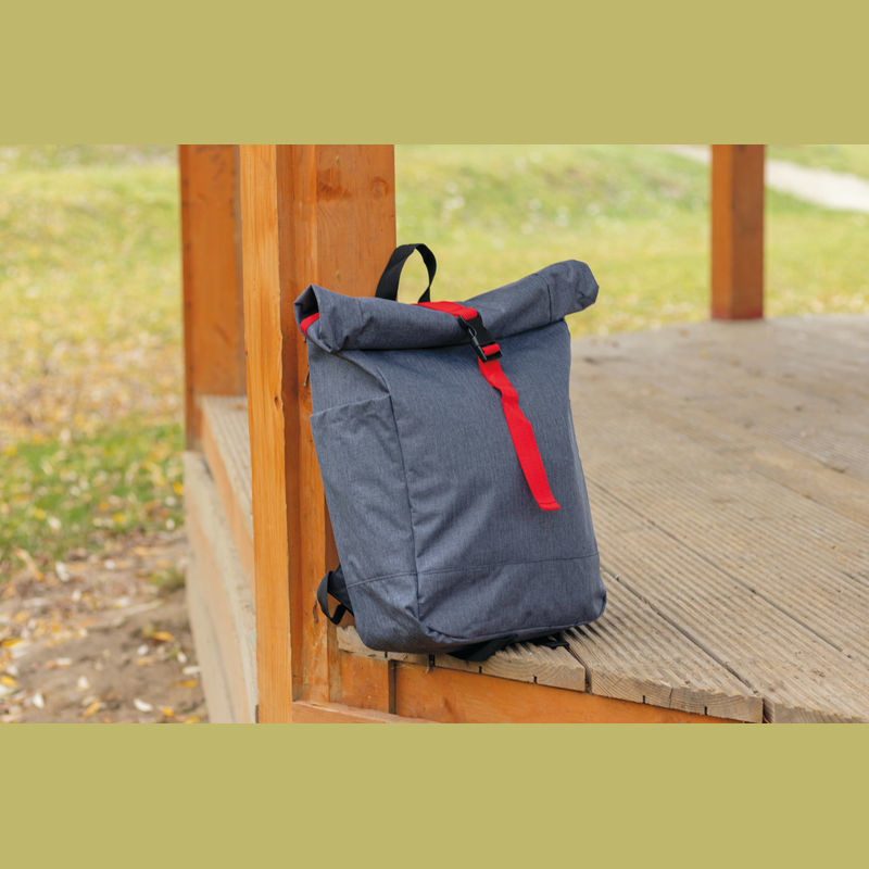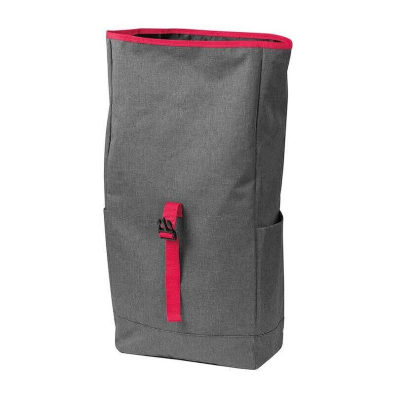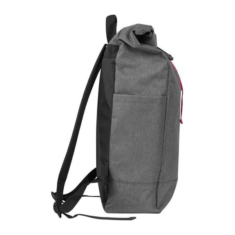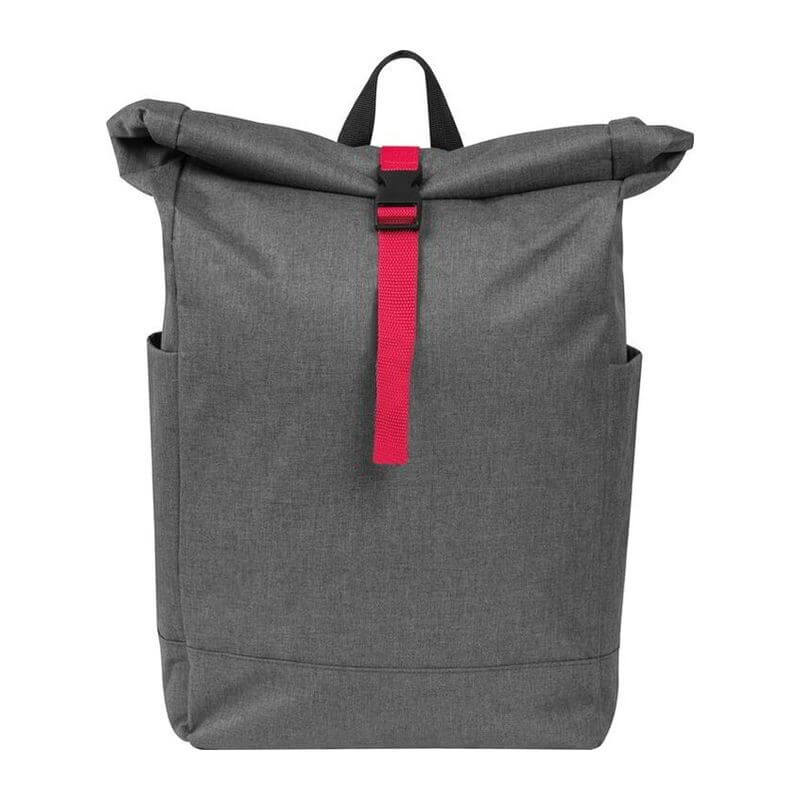 Stylový batoh v šedé barvě zvýrazněn barevným pásem na uzavření, s vyztuženými popruhy z polyesteru. Batoh se dá bezpečně uzavřít jednoduchým zkroucením nebo naskládáním.