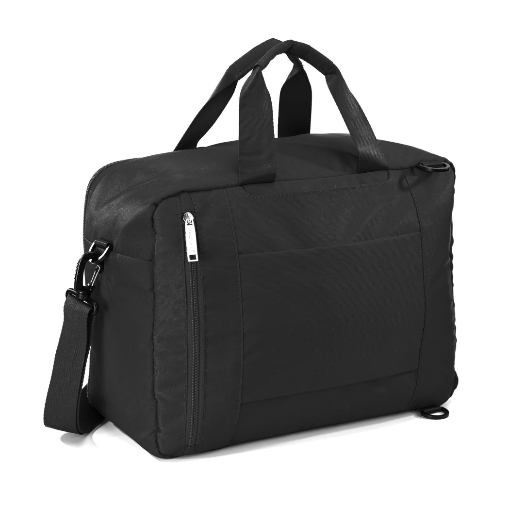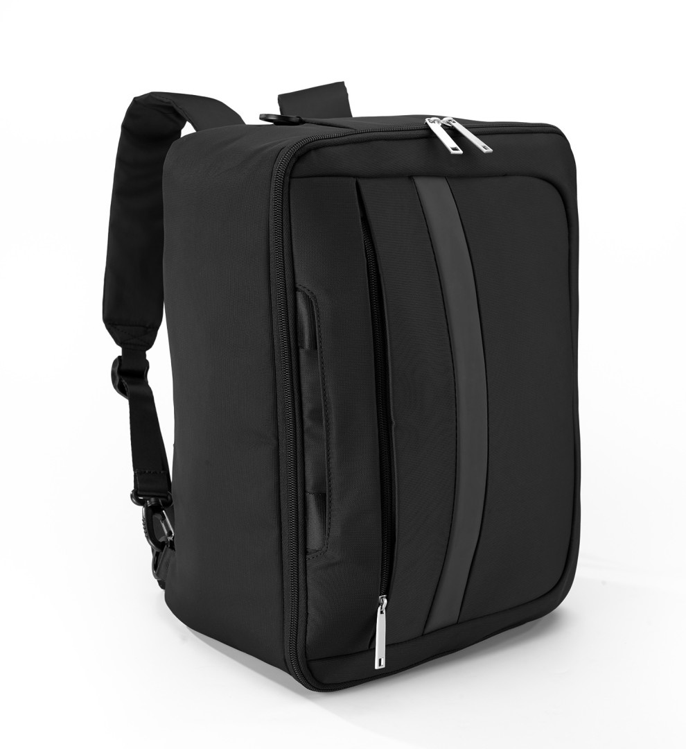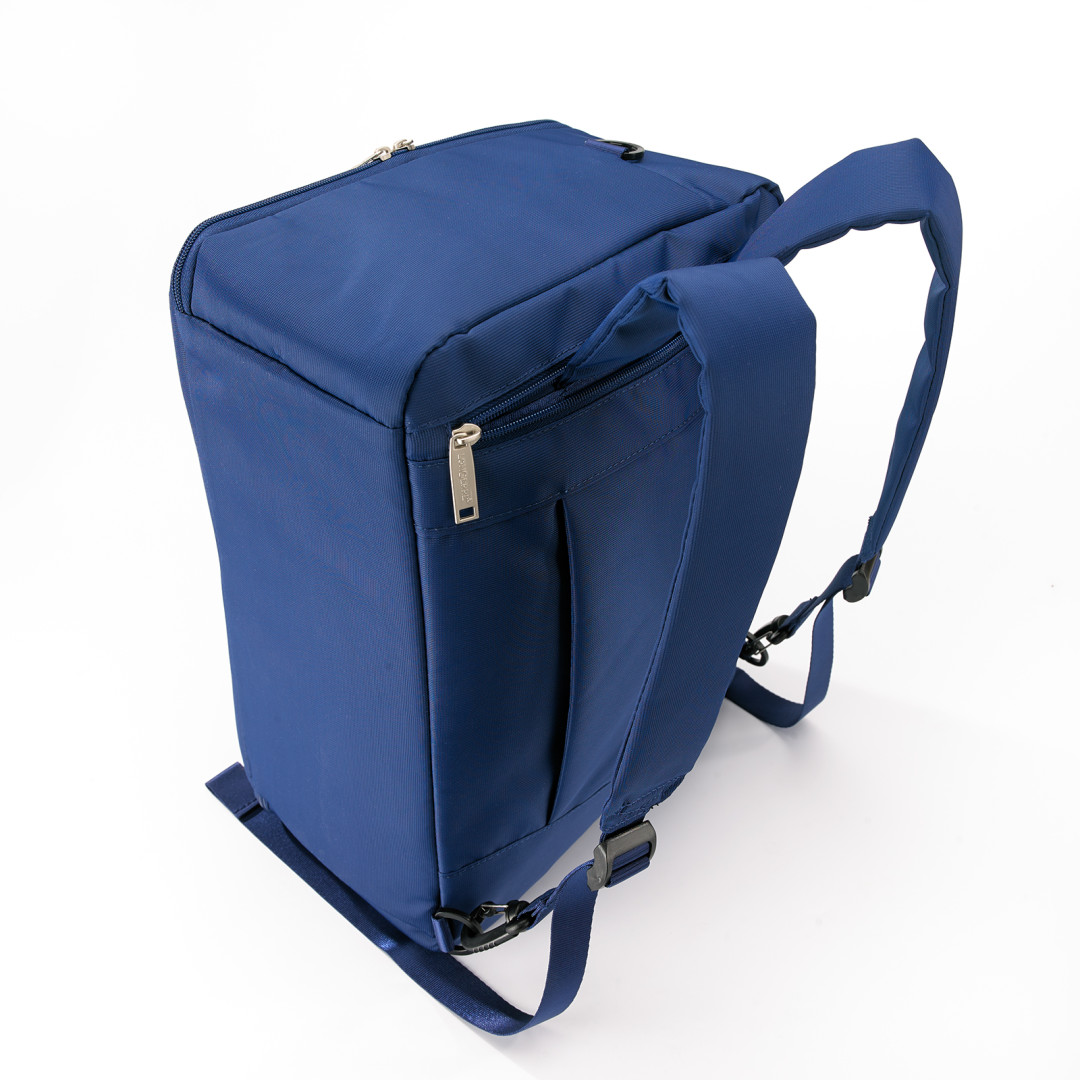 2 produkty v 1: batoh a příruční taška Mistral. Lehké a prostorné, s popruhy uvnitř. Má zatahovací kšandy, odnímatelný nastavitelný ramenní popruh a popruhy na zapínání. Má také prostornou hlavní přihrádku a vnější kapsu uzavíratelnou zipem. Vyrobeno z odolného materiálu, odolného vůči oděru.