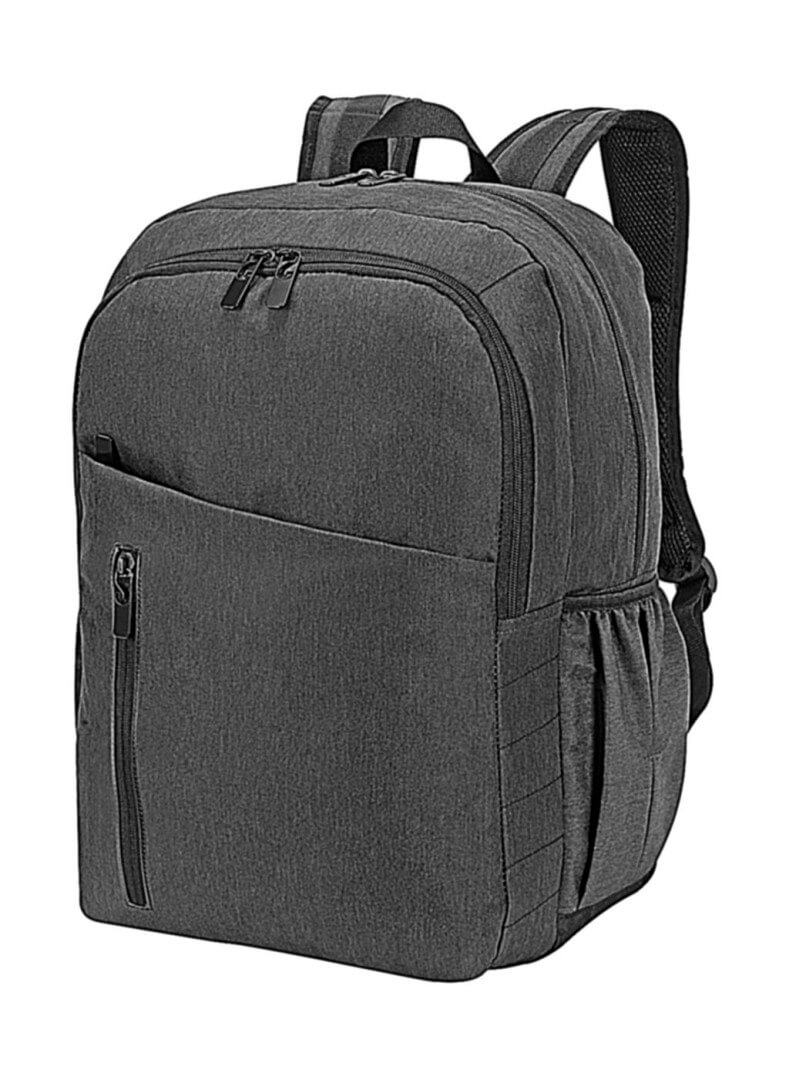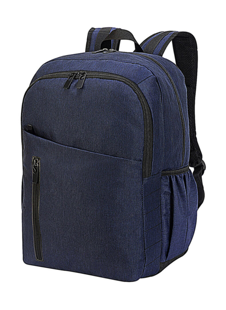 · Rukojeť na přenášení · nastavitelné polstrované ramenní popruhy s reflexními pruhy · polstrovaná zadní část · 2 velké hlavní přihrádky se zipem · 2 přední kapsy na zip, boční kapsy, organizér.