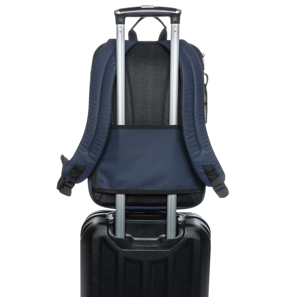 Univerzální batoh v čistém designu vhodný pro každodenní cestování do práce nebo do školy. Polstrovaný oddíl pro bezpečnou ochranu až 15,6" notebooku. Snadno přístupná kapsa na horní straně pro často používané drobnosti. Vnitřní síťované kapsy pro organizaci vnitřního prostoru. Zavazadlový štítek na boční straně. Vyrobeno z recyklovaného polyesteru s obsahem skenovatelné složky AWARE™ garantující obsah recyklátu. Z výtěžku každého prodaného produktu je přispěno 2 % na podporu iniciativy Water.org. Bez PVC.