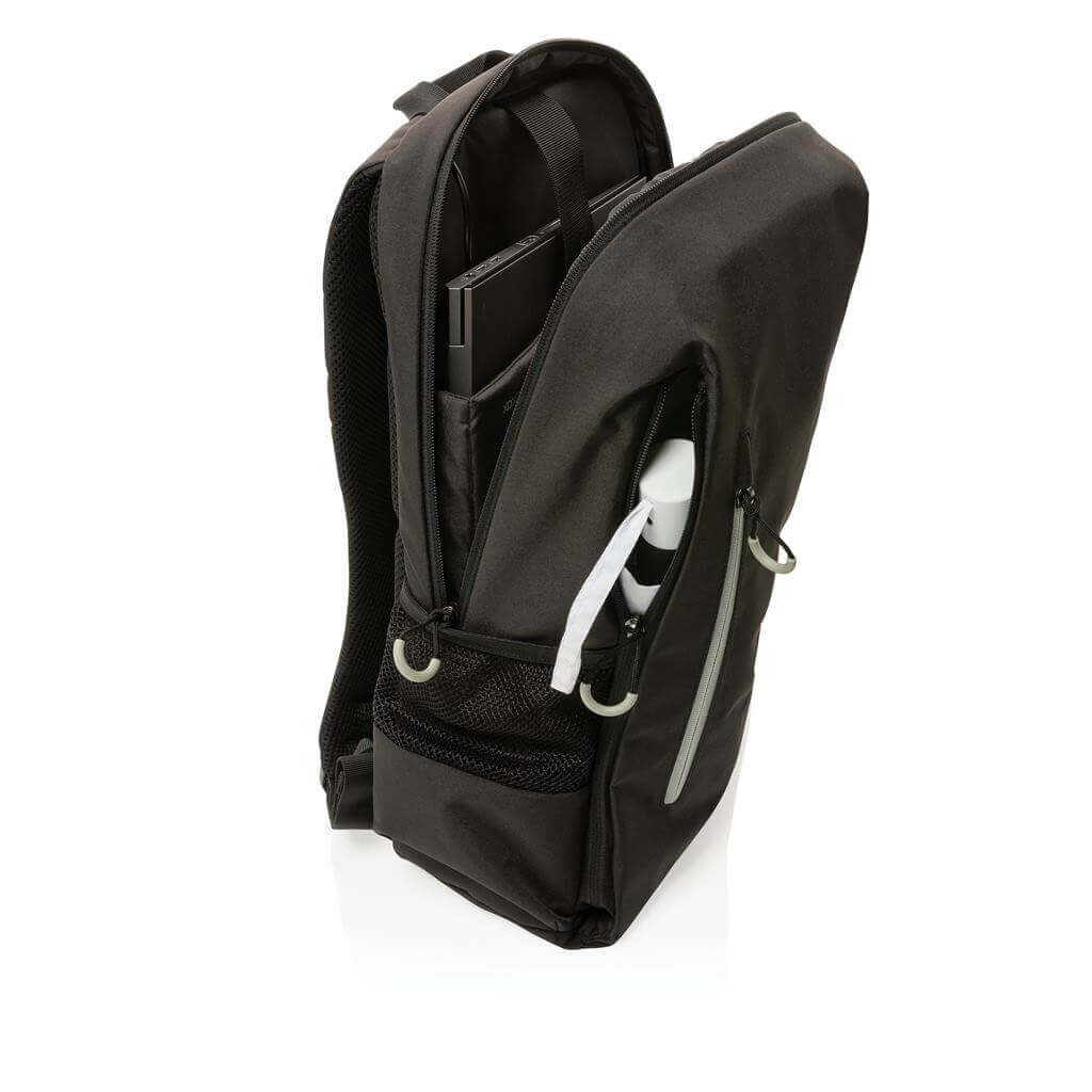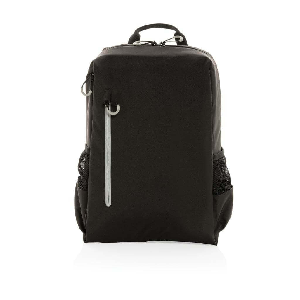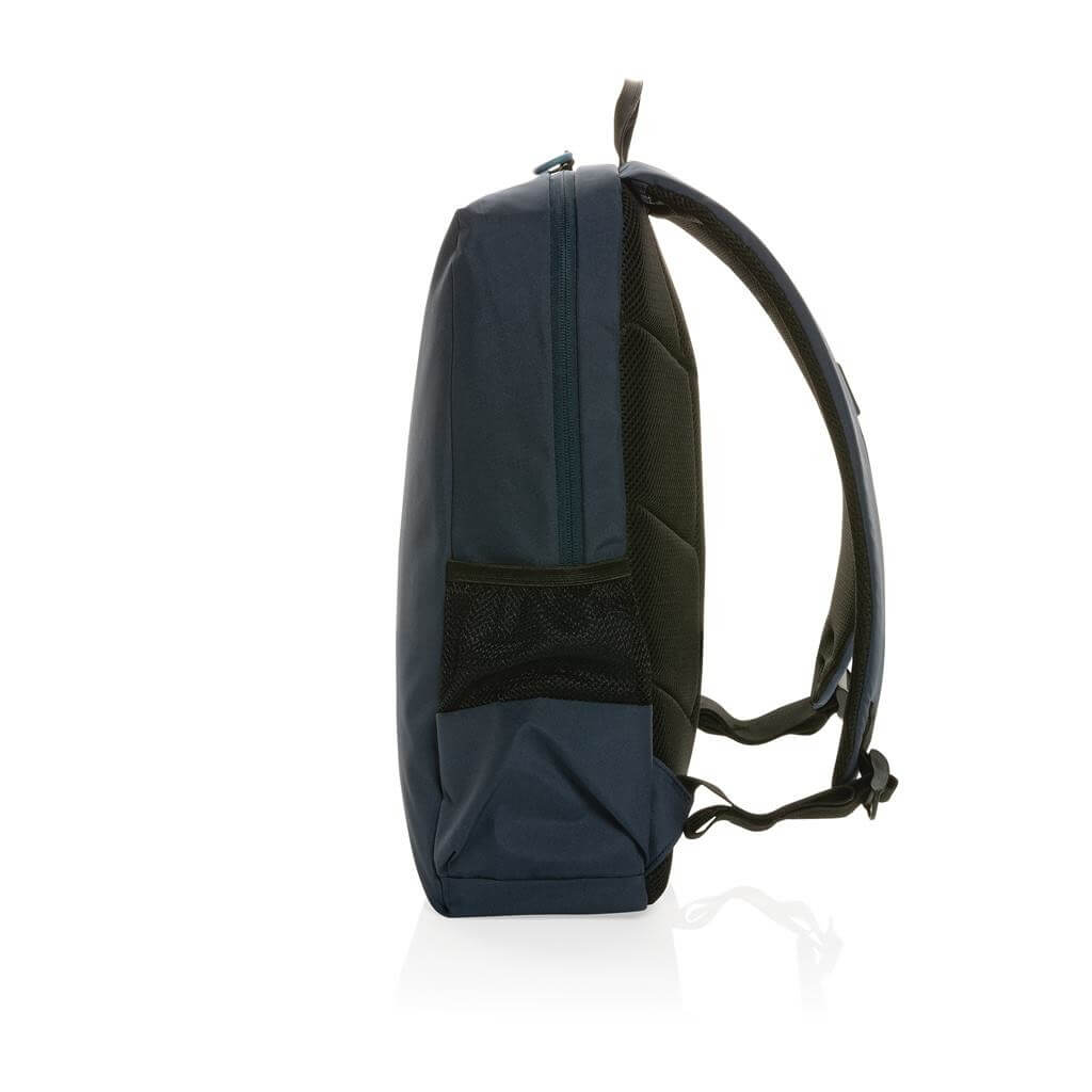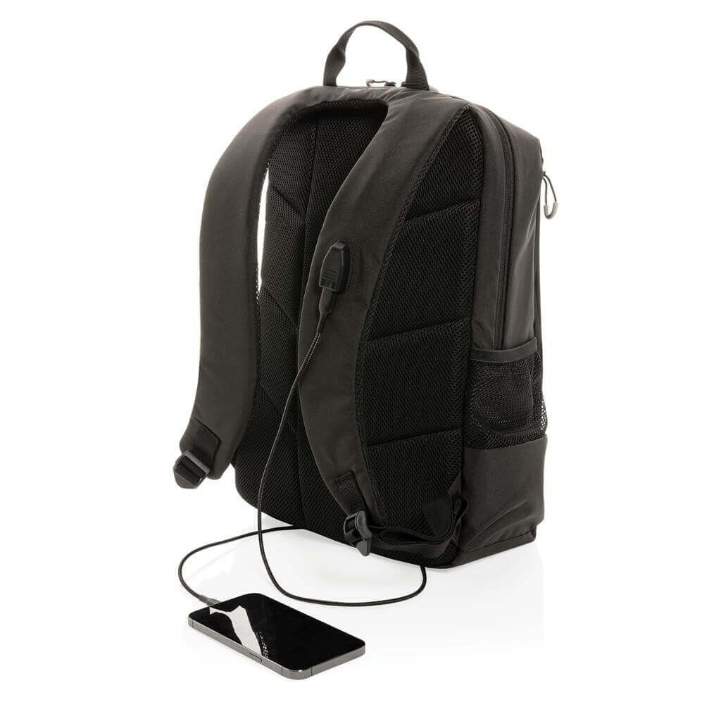 Jednoduchý, praktický a odolný každodenní batoh. Dvě postranní kapsy pro láhev či složený deštník. USB výstup na popruhu pro nabíjeníní z powerbanky, kterou lze připojit uvnitř batohu. Polstrovaný oddíl na 15,6" notebook a spousta dalších praktických kapes včetně těch s RFID ochranou. Vyrobeno z recyklovaného polyesteru včetně skenovatelné složky AWARE™ garantující obsah recyklátu. Na výrobu bylo využito 32,8 500ml PET lahví a bylo uspořeno 19,5 litrů vody. Z výtěžku každého prodaného produktu z kolekce Impact je navíc přispěno 2 % na podporu iniciativy Water.org. Bez PVC. Ochranný vzor®