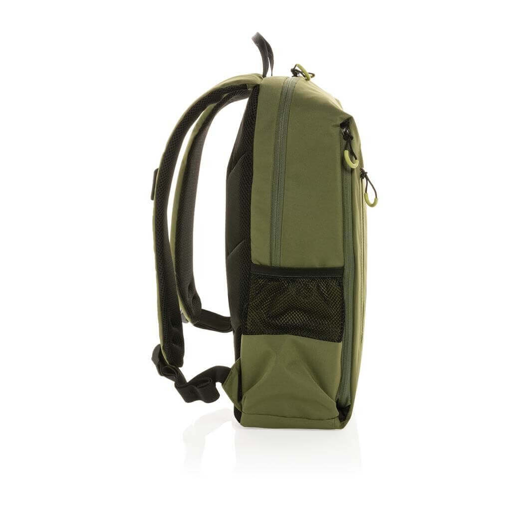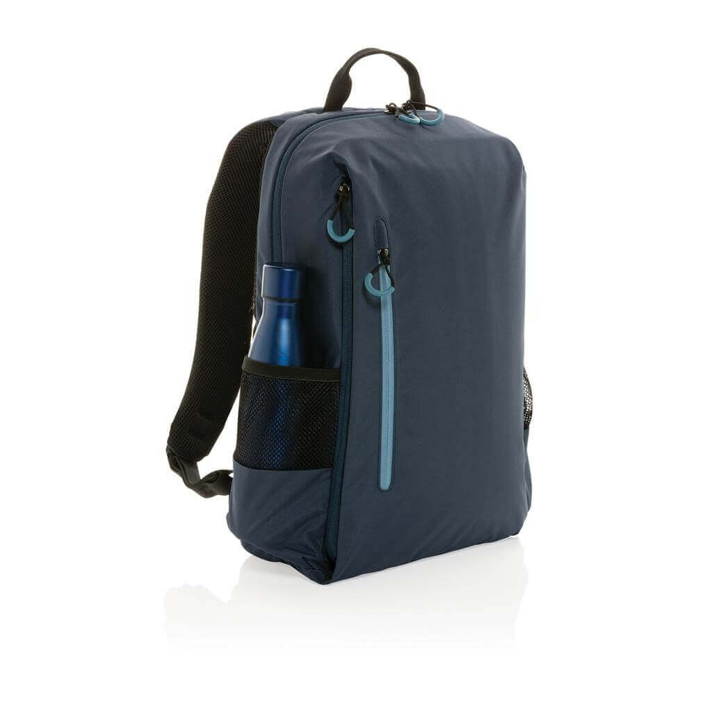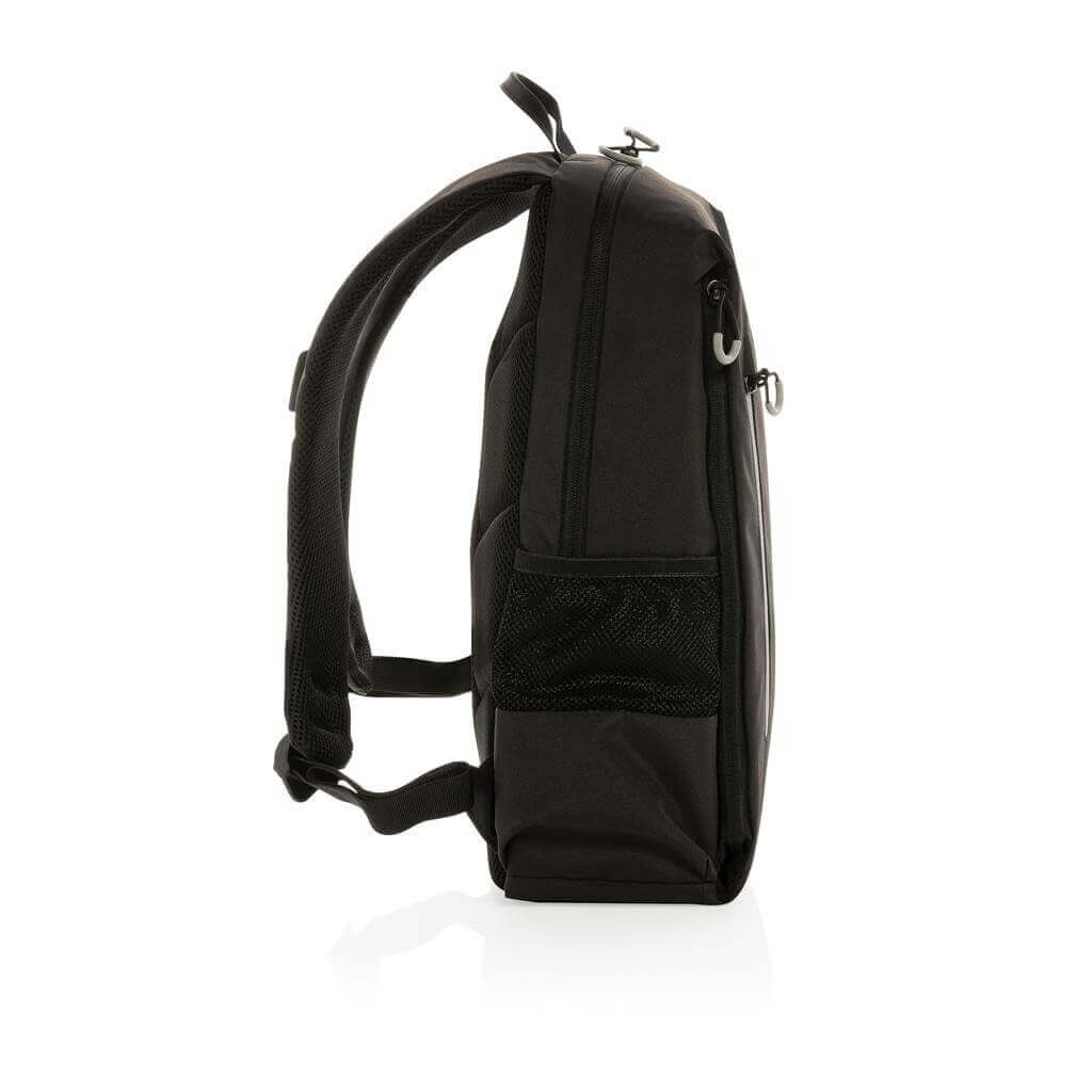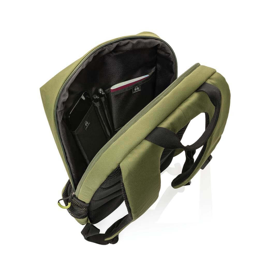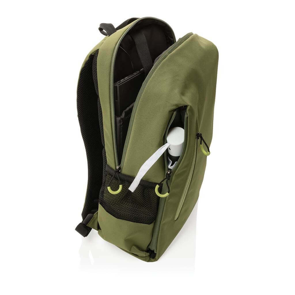 Jednoduchý, praktický a odolný každodenní batoh. Dvě postranní kapsy pro láhev či složený deštník. USB výstup na popruhu pro nabíjeníní z powerbanky, kterou lze připojit uvnitř batohu. Polstrovaný oddíl na 15,6" notebook a spousta dalších praktických kapes včetně těch s RFID ochranou. Vyrobeno z recyklovaného polyesteru včetně skenovatelné složky AWARE™ garantující obsah recyklátu. Na výrobu bylo využito 32,8 500ml PET lahví a bylo uspořeno 19,5 litrů vody. Z výtěžku každého prodaného produktu z kolekce Impact je navíc přispěno 2 % na podporu iniciativy Water.org. Bez PVC. Ochranný vzor®