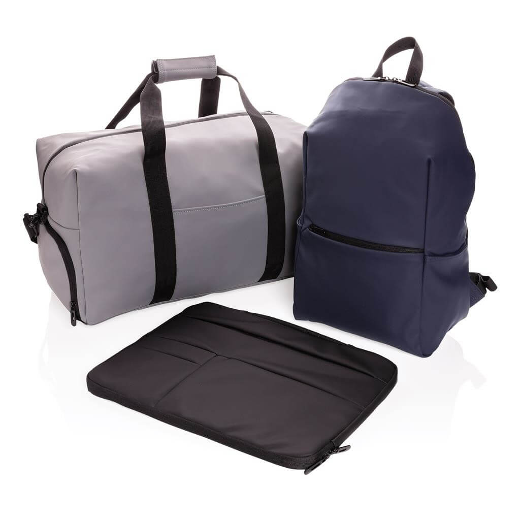 Moderní minimalistický batoh vyrobený z hladkého PU. Prostorný hlavní oddíl s vlastní přihrádkou na 15,6" notebook, 2 vnitřními kapsami a 2 očkama na pera. Přizpůsobitelné polstrované ramenní popruhy. Vnější část z PU, vnitřní část z 210D polyesteru. Bez PVC.
