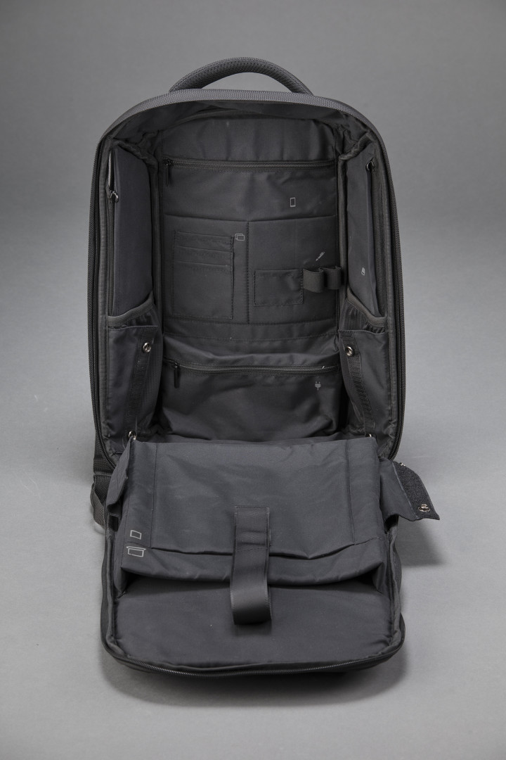 Velký jednokomorový batoh s mnoha kapsami a dvěma přihrádkami, které pomáhají udržovat věci organizované a chrání věci před poškozením. Skrytý hlavní zip (přístup dovnitř batohu ze zadní strany) zvyšuje ochranu proti krádeži. Batoh má barevné vložky, kovové zipy, polstrovanou horní rukojeť a popruh na zadní straně, který vám umožní připevnit batoh na kufr během cestování. Kapacita: 24 l