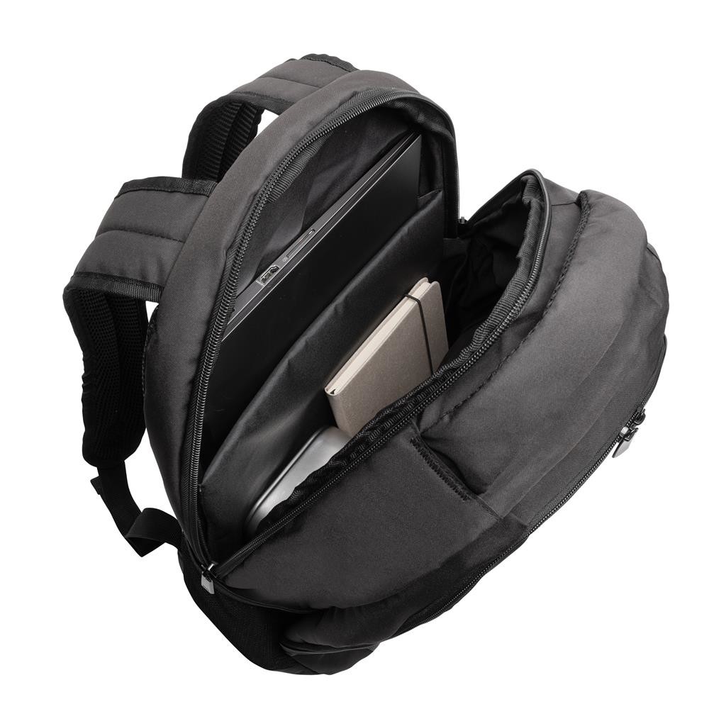 Batoh v klasickém designu s široce univerzálním využitím. Hlavní oddíl na zip s polstrovanou přihrádkou na 15,6" notebook. Přední menší kapsa na zip a množství přihrádek na drobnosti. Vnější část i polstrování jsou vyrobeny z recyklovaného polyesteru AWARE™. Díky využití technologie skenování a blockchain, AWARE™ umožňuje garantovat skutečné obsažení recyklovaného materiálu. Na výrobu bylo využito 22 500ml PET lahví a bylo uspořeno 13 litrů vody. Z výtěžku každého prodaného produktu z kolekce Impact je navíc přispěno 2 % na podporu iniciativy Water.org. Bez PVC.